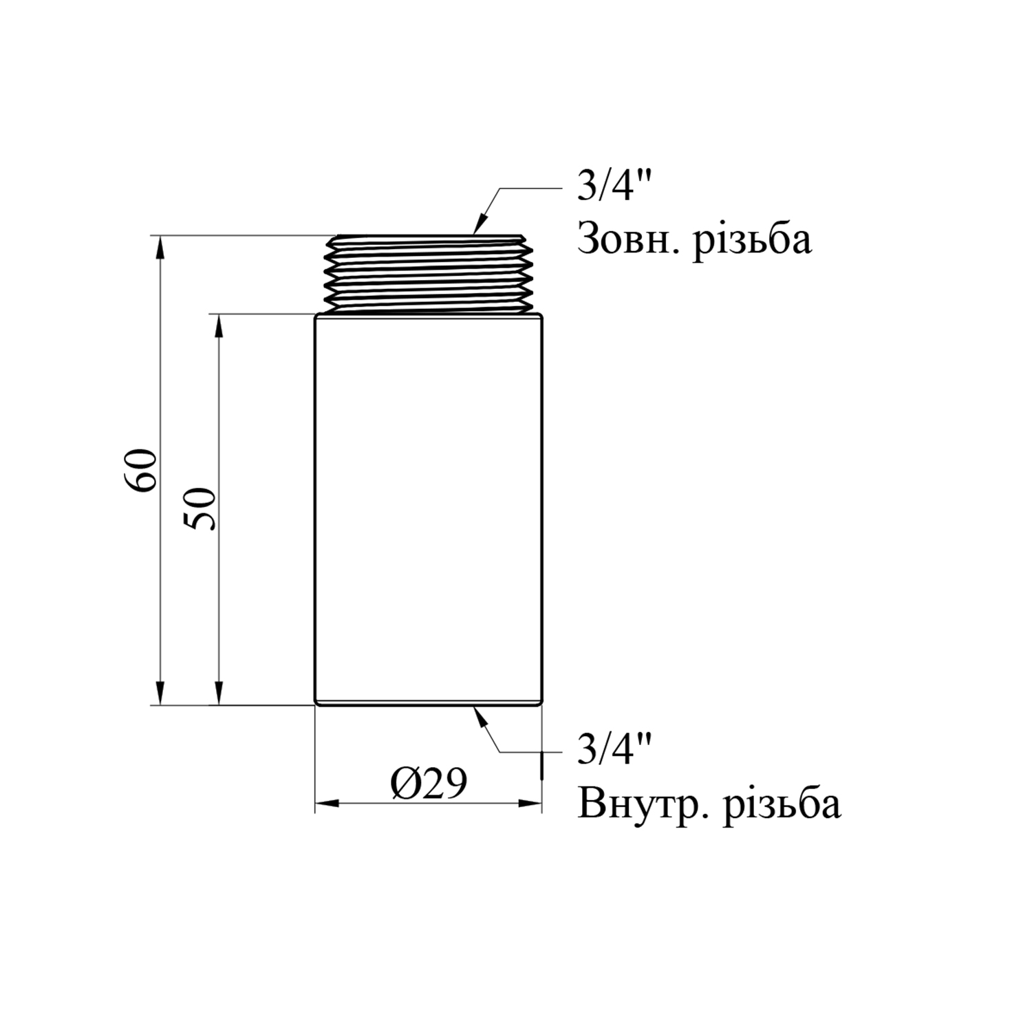 Характеристики Подовжувач STA 3/4 ВН, L=50 мм латунний код товару CV016552