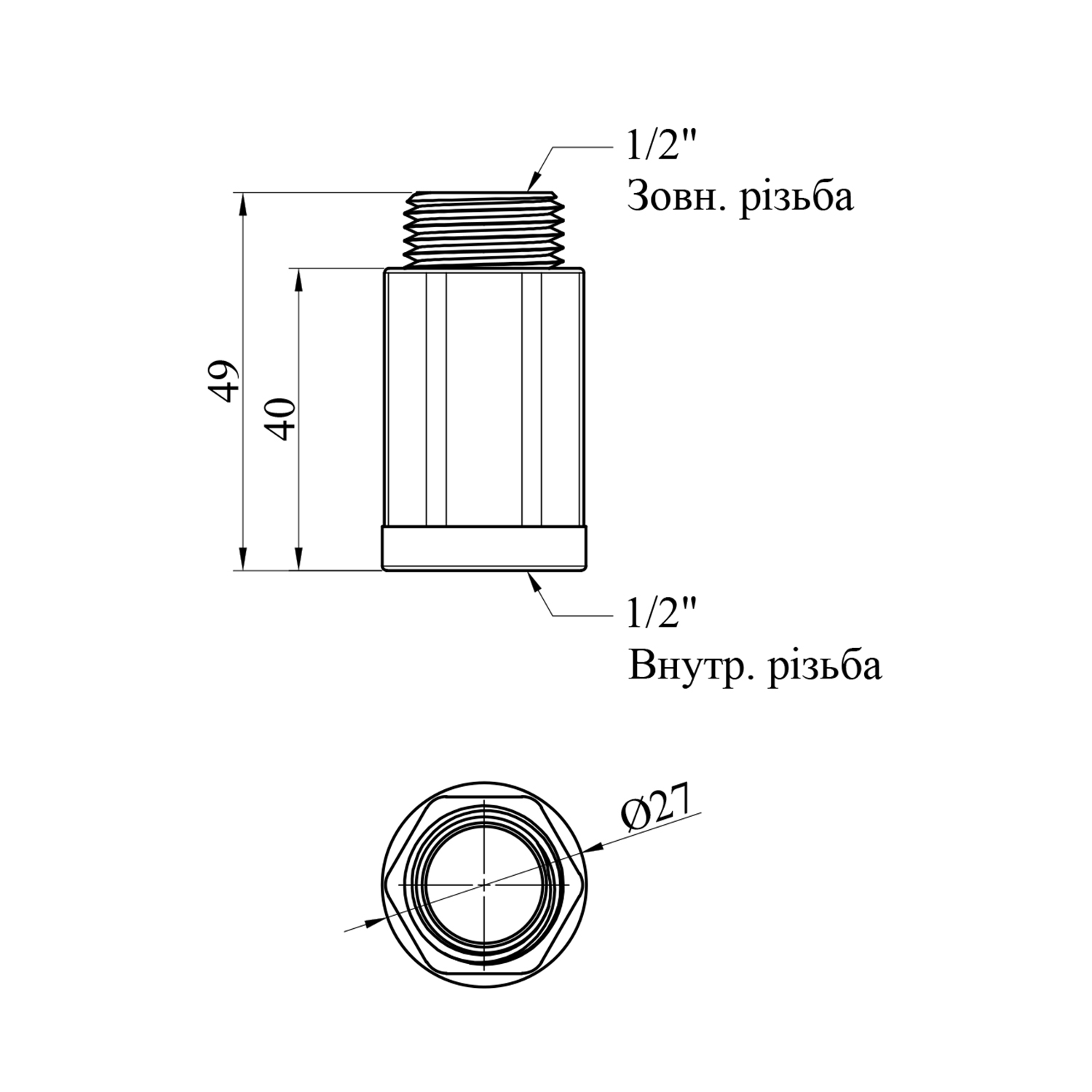Опис Подовжувач посилений LexLine 1/2 ВН, L=40 мм латунний УК0601-В40 код товару CV029064