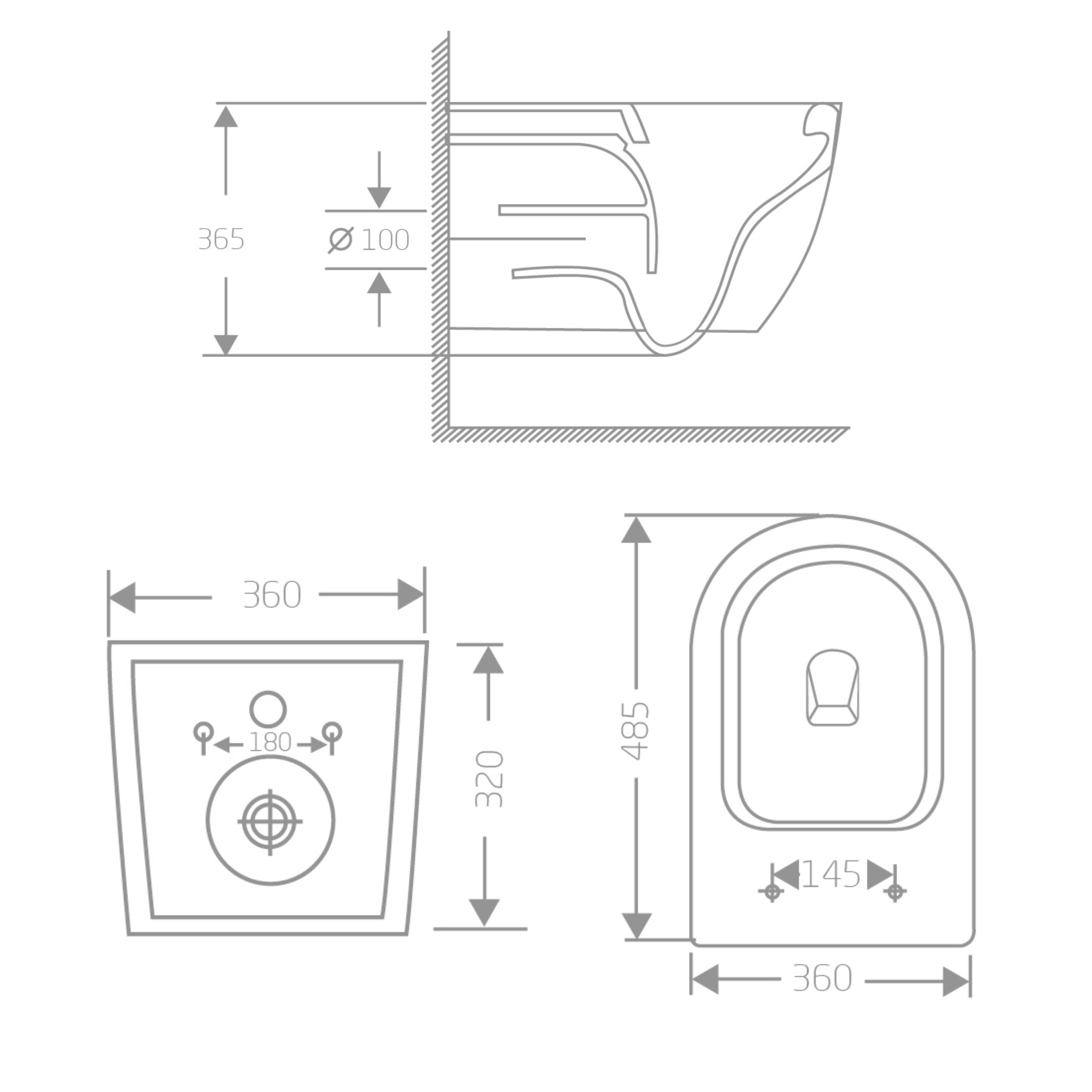 - Одно отверстие слева у края безободковой чаши с технологией смыва Tornado 3