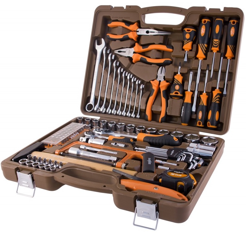 - Універсальний набір інструментів OMBRA OMT101S - це універсальний комплект високої якості, його можна рекомендувати професіоналам які виконують найрізноманітніші монтажні та ремонтні роботи. У наборі 101 предмет, зокрема представлені викрутки, ключі зі змінними торцювальні і свічковими головками різного діаметру, ключі, шестигранники, пасатижі, молоток, ручна ножівка, будівельний ніж і рулетка. Всі інструменти виготовлені з міцної сталі, рукоятки із пластику. Набір поставляється в зручному пластиковому кейсі, для кожного інструменту і насадки передбачений свій відсік.