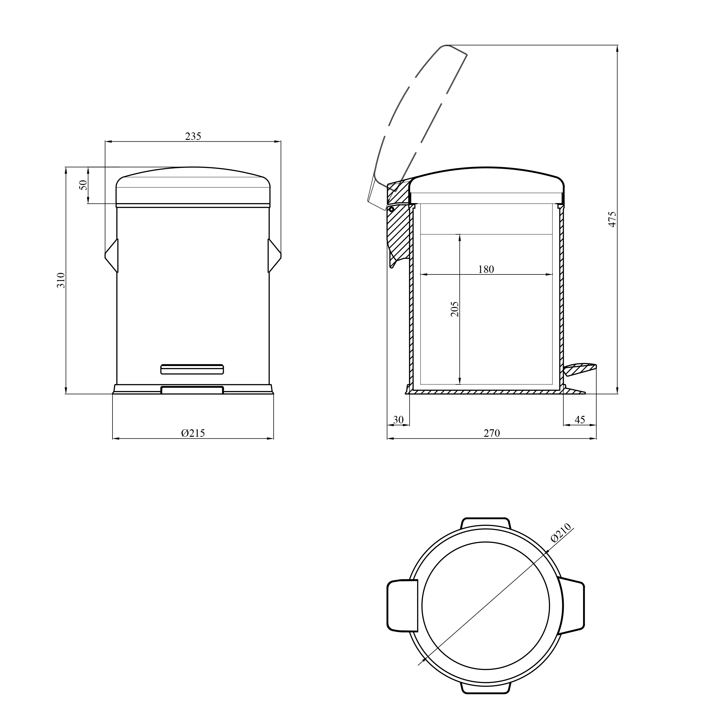 Ведро для мусора Kroner KRP Graz - GRP406 5 л — практичное и долговечное решение для дома или офиса. Корпус выполнен из нержавеющей стали, устойчивой к влаге, коррозии и механическим повреждениям. Благодаря педальному механизму крышка открывается без прикосновения рук, обеспечивая максимальную гигиеничность. Компактный объём 5 литров и стильный дизайн делают ведро удобным и эстетичным элементом интерьера.