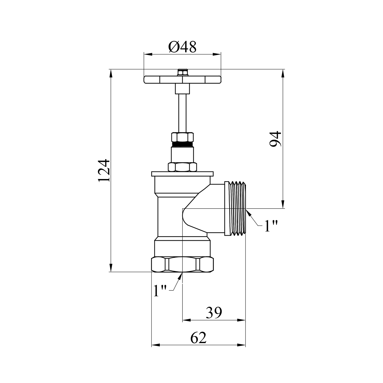 Опис Вентиль запорний кутовий LexLine 1 ВН PN16 латунний УК1117-В код товару CV031675