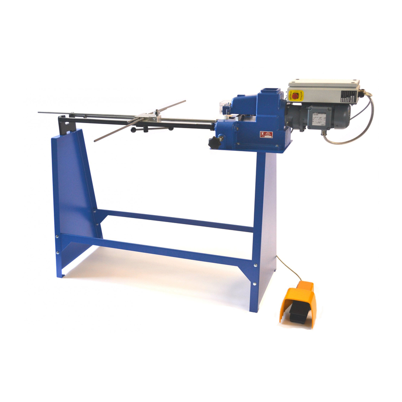 Производится в соответствии с требованиями Европейских Директив (имеет СЕ-маркировку). Конструкция из чугуна обеспечивает устойчивость и прочность на скручивание. Скорость реза (от нуля до максимума) регулируется путём нажатия на педаль, оснащённую защитной крышкой. Есть возможность реверсивного вращения, что особенно важно при резке ручным способом. Устройство оснащено боковыми ограничителями для резки полос шириной до 150 мм и линейкой со шкалой для определения диаметра при круговой резке. В целях защиты пластикового ведущего ролика глубину проникновения дисковогоножа можно регулировать. Вертикально регулируемый высокоточный центровочный штифт обеспечивает правильное расположение и надёжную фиксацию материала. В стандартную комплектацию также входят: станина, 1 прошивень диаметром 15 мм, 3 шестигранных ключа, дисковые ножи (Ø 30 мм –для малых диаметров, Ø 40 мм –стандартный, Ø 50 мм –для продольной резки материалов толщиной более 10 мм).