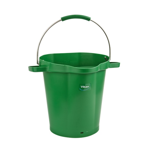 20-літрове відро прекрасно підходить для змішування інгредієнтів і зберігання менших відер Vikan. Підходить для твердих і рідких інгредієнтів, досить велике і зручне для змішування, але компактне, що дає його легко піднімати і переносити. Відро має додаткову нижню ручку, закруглений ободок і носик, що економить сили співробітників, не дозволяє вмісту виливатися при піднятті і наливанні відра. Довговічні похилі поділу всередині відра допомагають точніше розраховувати обсяг.