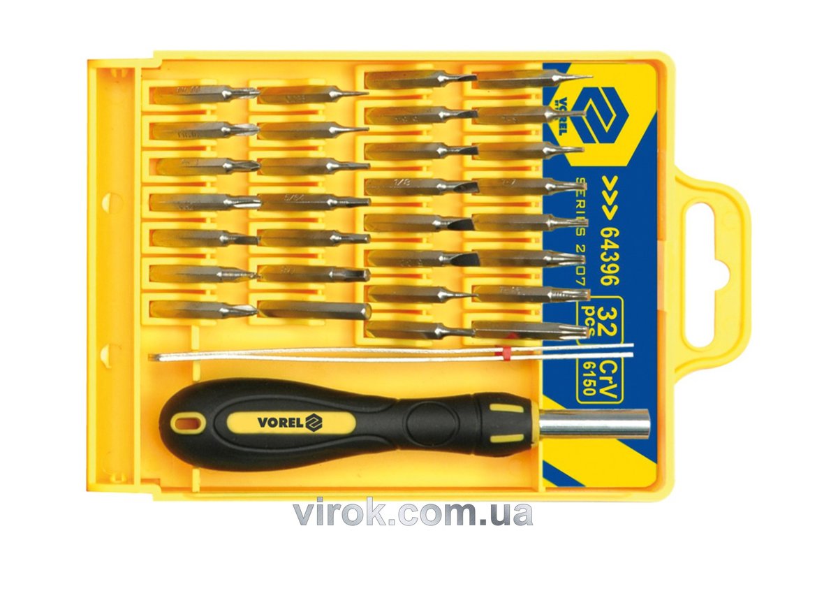 Опис Викрутка для точних робіт VOREL з насадками Набір 32 шт. [10/50] код товару 64396