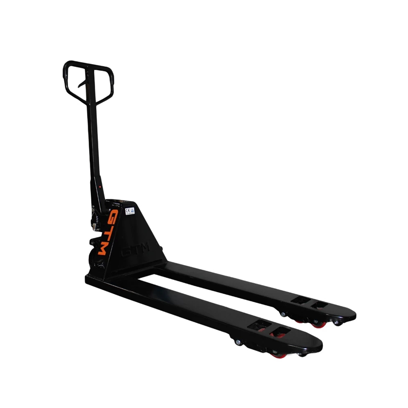 GTM SYP-IIK / 2500kg - професійне обладнання, призначене для переміщення вантажів вагою до 2,5 т на складах, в магазинах і виробництвах. Відрізняється посиленою конструкцією корпусу та гідровузла, що дозволяє надійно працювати під час всього терміну експлуатації. Стандартна довжина вил 115 см дозволяє працювати з европалетами, не побоюючись пошкодити товар. Колеса в даній моделі збільшено в розмірі, що дозволяє працювати з великим навантаженням.