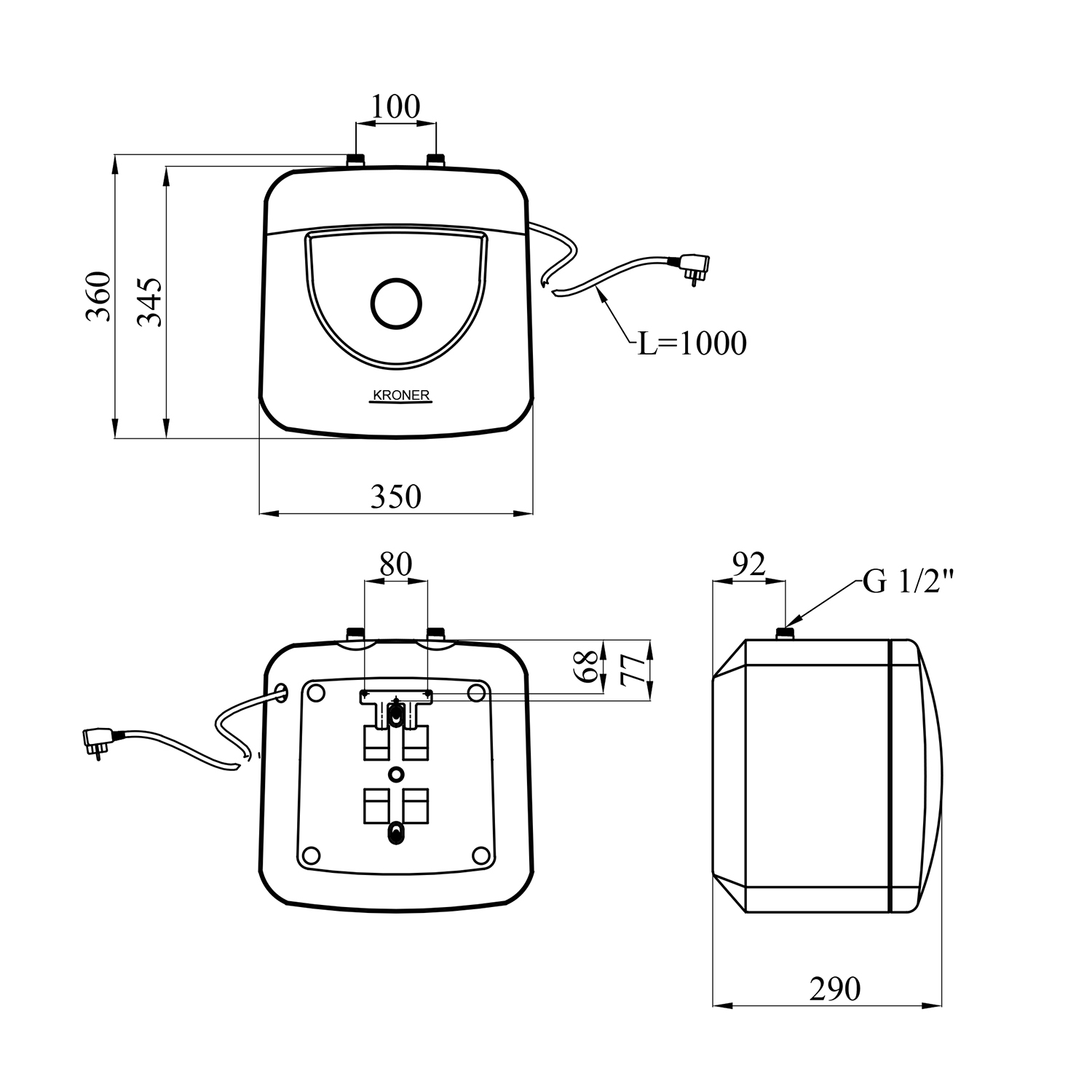 Характеристики Водонагрівач Kroner Small K10SU1.5 з мокрим ТЕНом код товару CV034585