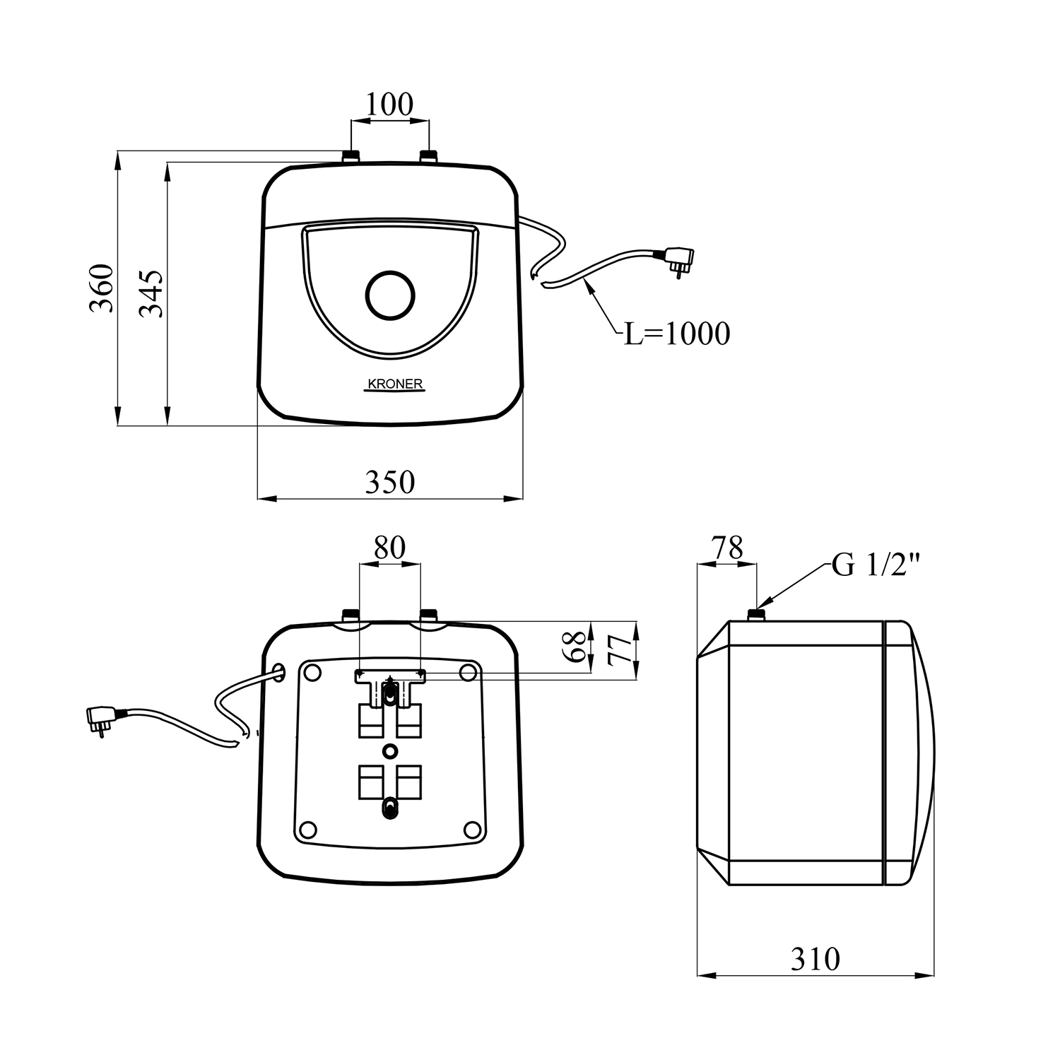 Характеристики Водонагрівач Kroner Small K15SU1.5 з мокрим ТЕНом код товару CV034586