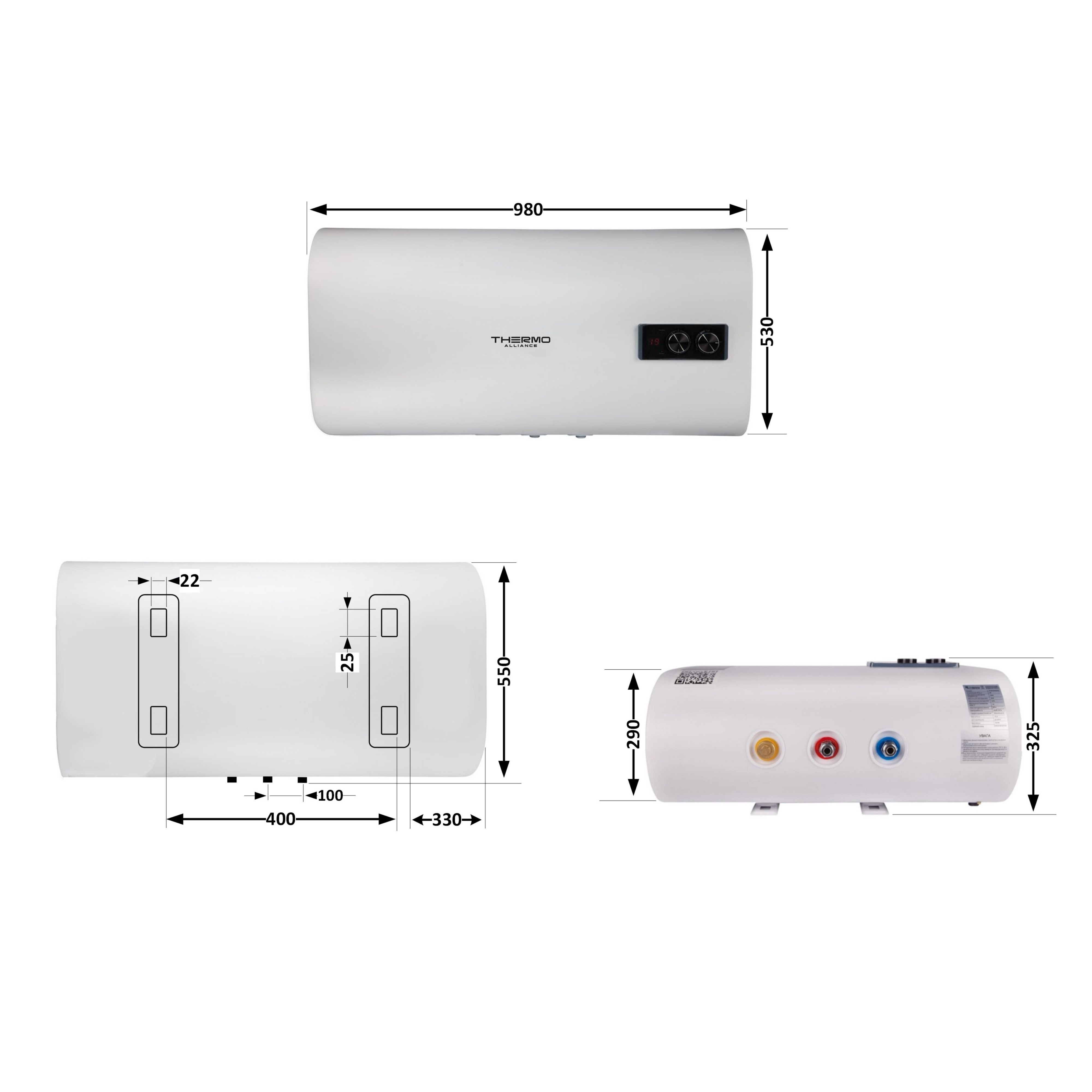 Характеристики Водонагрівач електричний Thermo Alliance 80 л плоский горизонтальний, мокрий ТЕН 2 кВт (0,8+1,2) DT80H20G(PD) код товару SD00032265