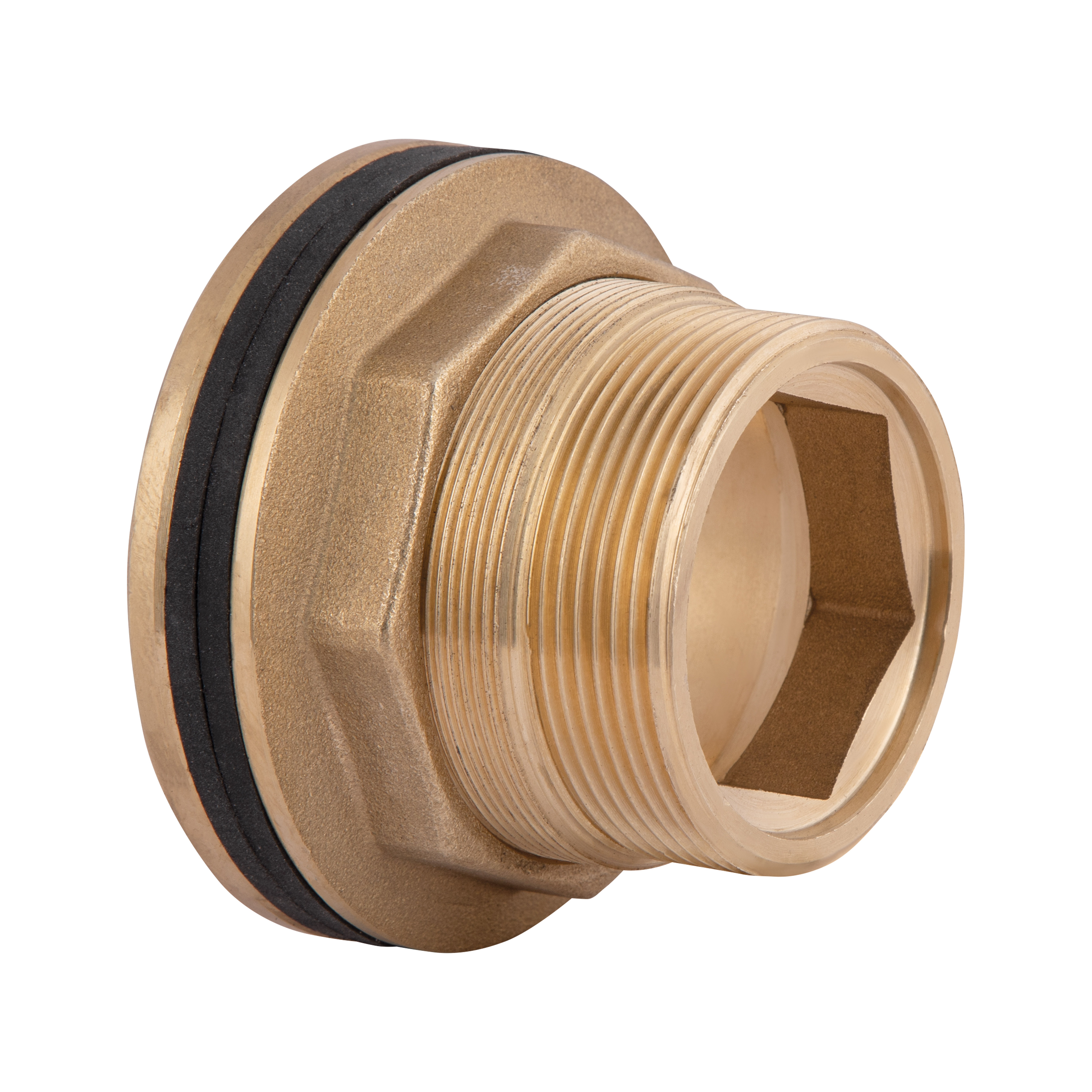 Врезка в бак SD Plus 11/2 SD47792 – элемент трубопровода, являющийся втулкой, которая имеет наружную резьбу для крепления трубы к емкости. Такой вид латунного штуцера предназначен для монтажа в таких местах, где невозможно или нет доступа к проведению сварочных работ, например в пластиковых емкостях. Врезка в свою очередь может быть установлена в емкости в любом месте, кроме изгибов и ребер. Перед началом проведения монтажных работ в месте крепления штуцера высверливается отверстие под его установку.