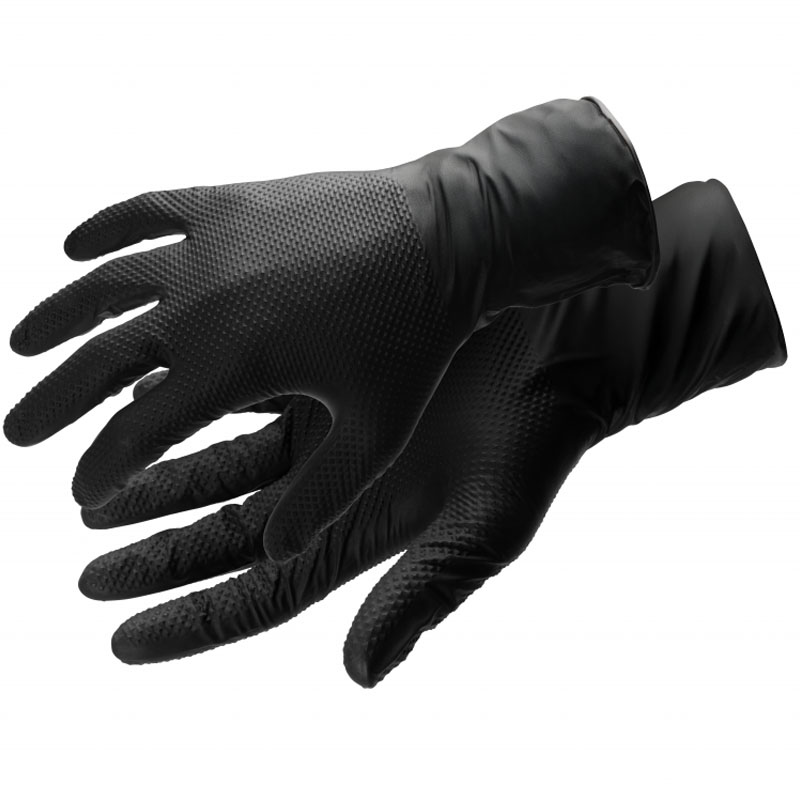 Одноразові нітрилові рукавички з текстурою у вигляді ромбів, що забезпечують надійне захоплення та ефективний захист у жирному та вологому середовищі. Виготовлені із міцного матеріалу, стійкого до хімічних речовин, ідеально підходять для складних умов.