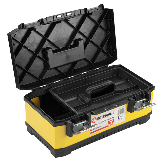Опис Ящик для інструментів з металевими замками INTERTOOL BX-2019, 19,5 см, 498*289*222 мм код товару BX-2019