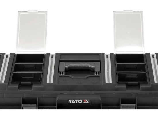 Опис Ящик для інструментів YATO з 2 органайзерами, 793х385х322 мм, на 2 колесах, пластиковий корпус код товару YT-09185