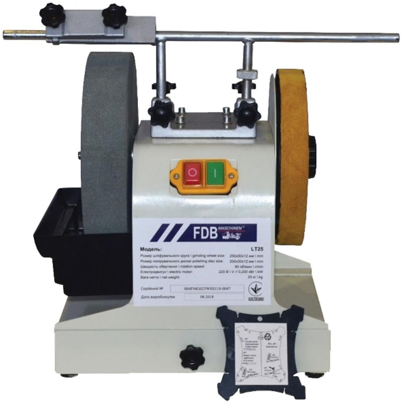 FDB Maschinen LT 25 – професійний високоякісний агрегат, призначений для заточування та полірування різальних поверхонь різного ріжучого інструменту: ножиць, стамесок, сокир, ножиків, зубил тощо. Конструкція верстата передбачає наявність ємності для води, що дозволить заточувати інструмент «мокрим» способом. Полірувальне колесо має шкіряне покриття. Верстат оснащений універсальним утримувачем для закріплення інструменту. Конструкція верстата дозволяє встановлювати універсальний тримати у вертикальному положенні з боку органів управління та у горизонтальному положенні з протилежного боку.
