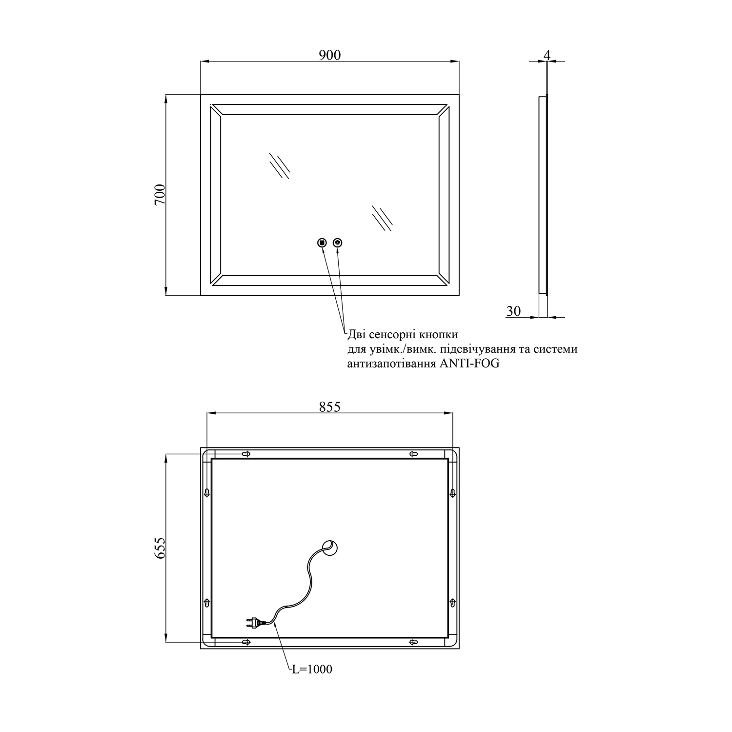 - Тип: дзеркало з LED-підсвіткою