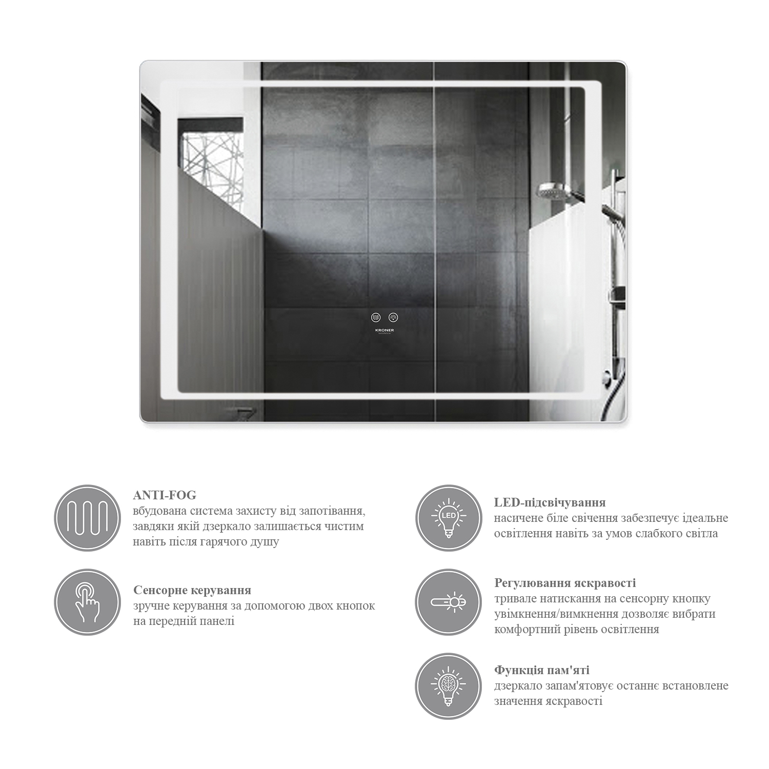 Характеристики Зеркало Kroner KRP Spiegel HR2 - 8060 з LED-підсвіткою та антизапотіванням код товару CV030033