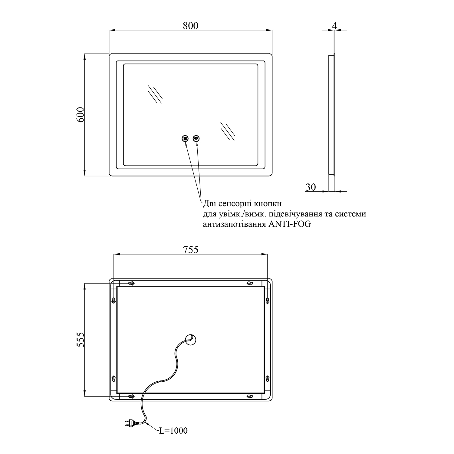 Зеркало Kroner KRP Spiegel HR2 - 8060 з LED-підсвіткою та антизапотіванням