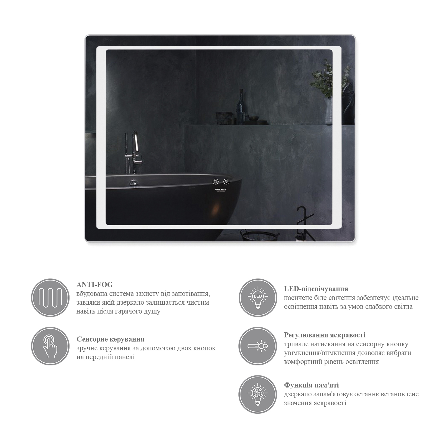 Опис Зеркало Kroner KRP Spiegel HR2 - 9070 з LED-підсвіткою та антизапотіванням код товару CV030034