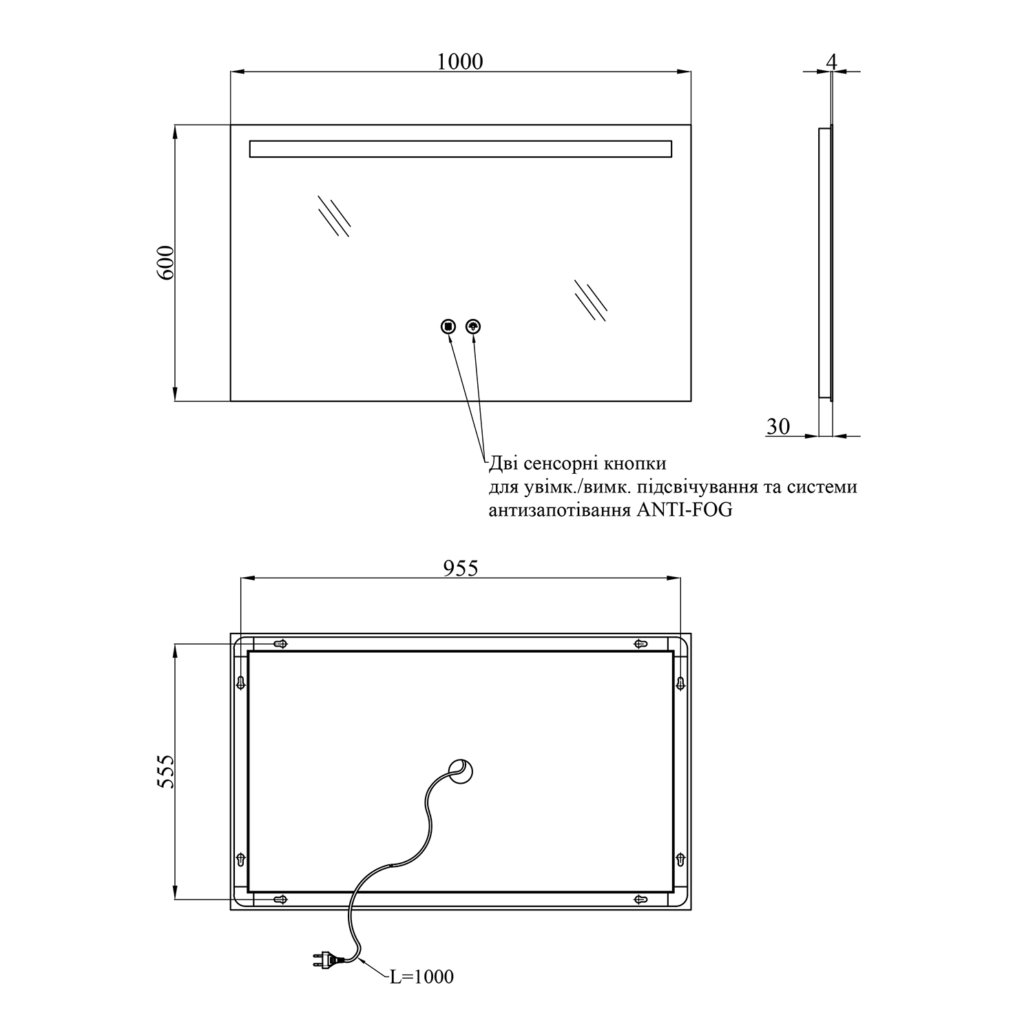 Характеристики Зеркало Kroner KRP Spiegel HR4 - 10060 з LED-підсвіткою та антизапотіванням код товару CV030036