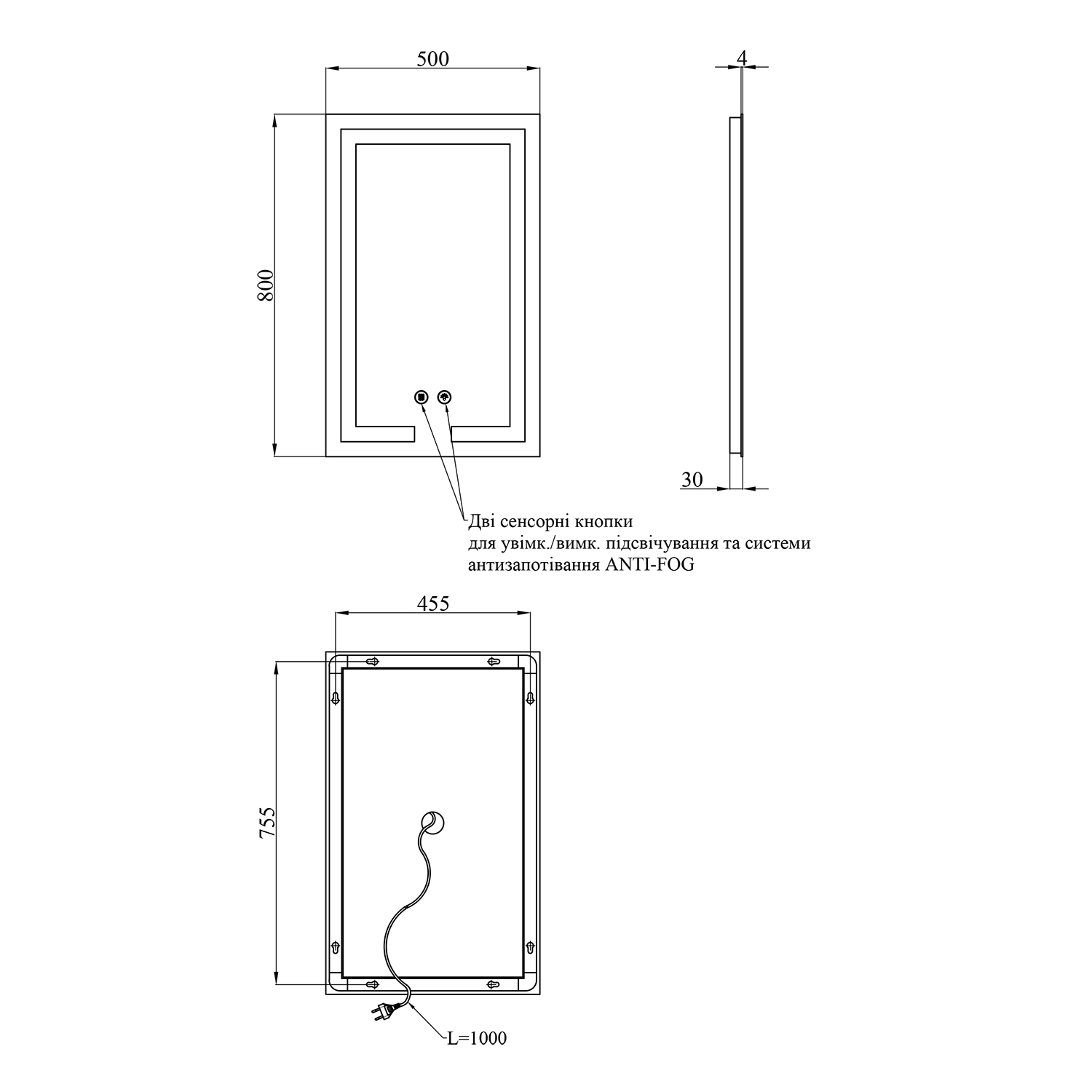 Зеркало Kroner KRP Spiegel VR1 - 5080 з LED-підсвіткою та антизапотіванням