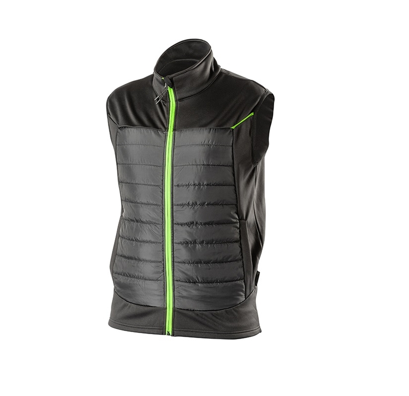 Якісно виготовлений чоловічий жилет гібридний. Спереду та ззаду на корпусі утеплена дутими елементами, а бічні частини виготовлені з еластичного трикотажу. Високоякісні матеріали забезпечують довговічність, високий комфорт використання та не обмежують свободу руху. Жилет легко складається та важить дуже мало. Це робить його ідеальним для будь-якої подорожі чи роботи. Цілорічний одяг: взимку жилет можна носити під курткою, а в прохолодні весняні, осінні та літні дні він чудово працює як самостійний одяг. Крім того, світловідбиваючі деталі підвищують безпеку руху після настання темряви.