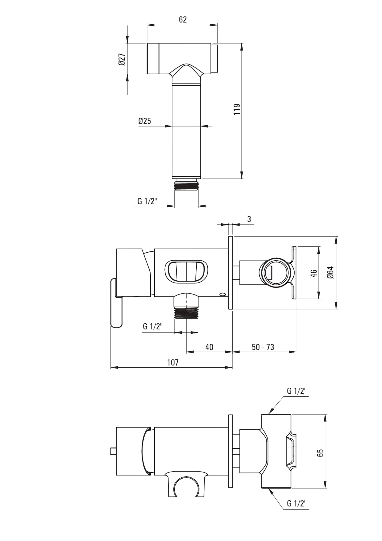 Опис Змішувач для біде Deante Silia, з гігєнічним душем, брашоване золото код товару BQS_R34M