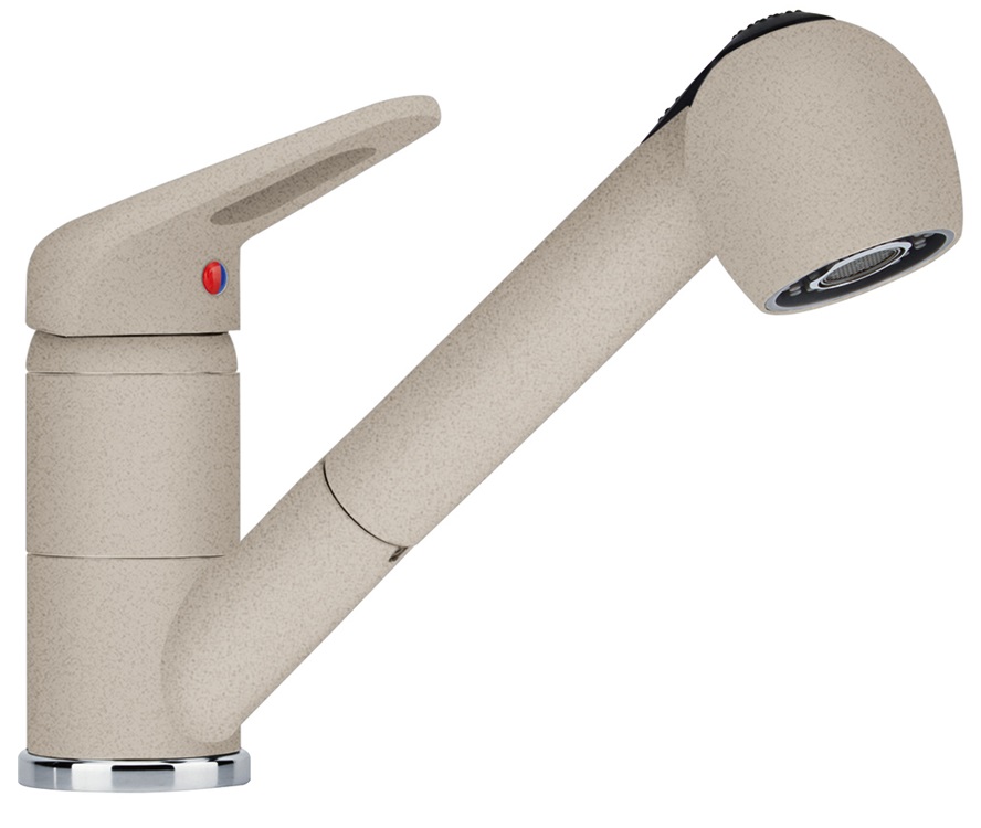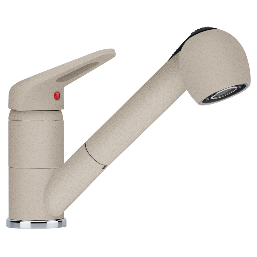 Врізний одноважільний кухонний змішувач Franke Novara-Plus Pull Out (115.0470.663) Сахара з висувним виливом (120 см), важелем зверху та багаторівневим аератором.