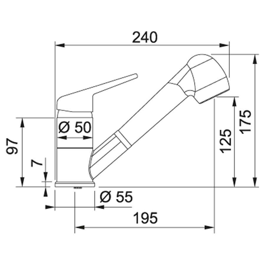 Характеристики Змішувач для кухні Franke Novara Plus, довж.виливу - 195мм, витяжний, 1важіль, сахара код товару 115.0470.663
