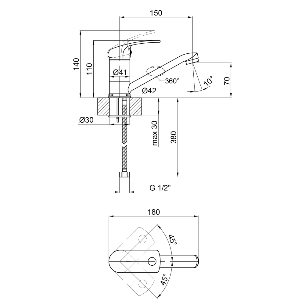 Опис Змішувач для кухні Lidz (CRM) Mars 81 002M 150 мм код товару SD00040951