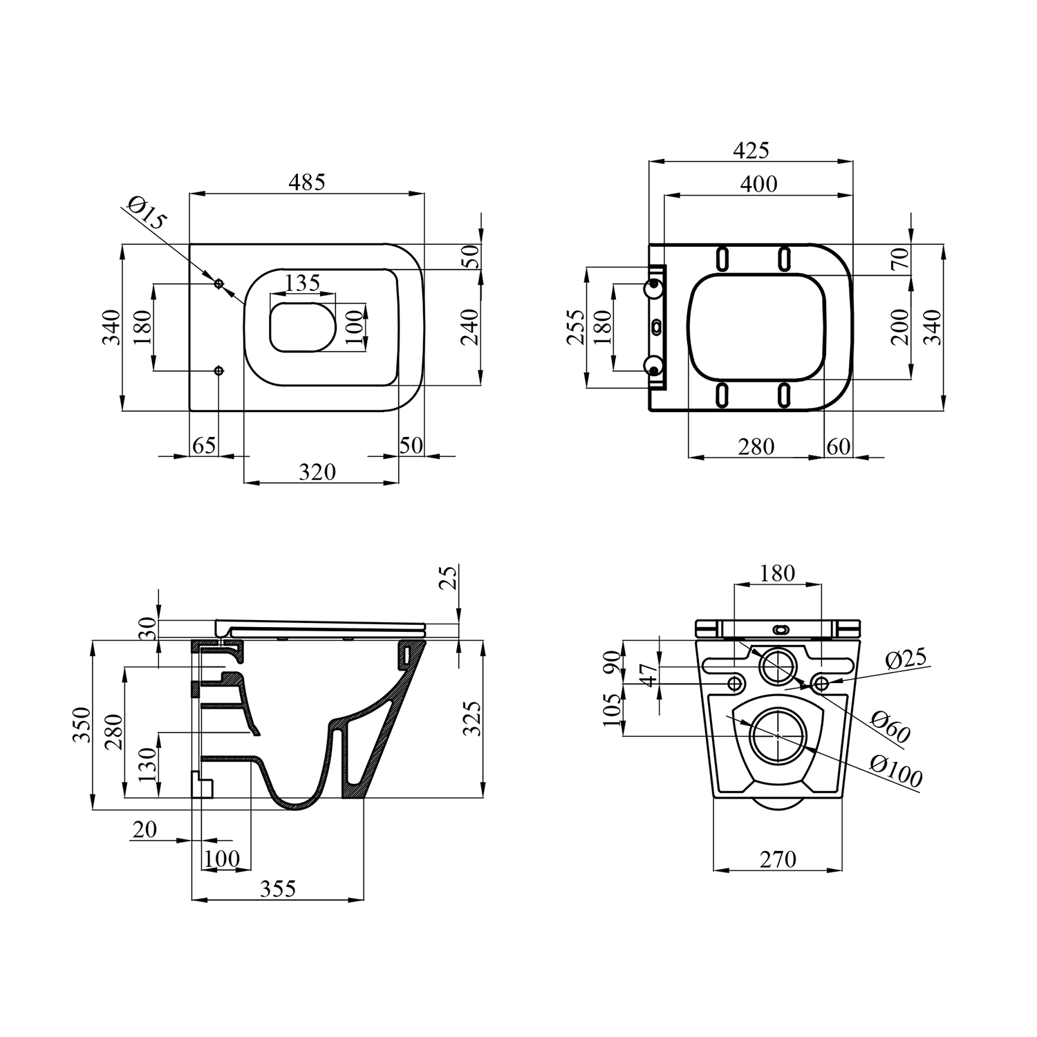 Описание Унитаз подвесной безободковый Kroner Eifel WHI493436 TORNADO с сиденьем код товару CV034923