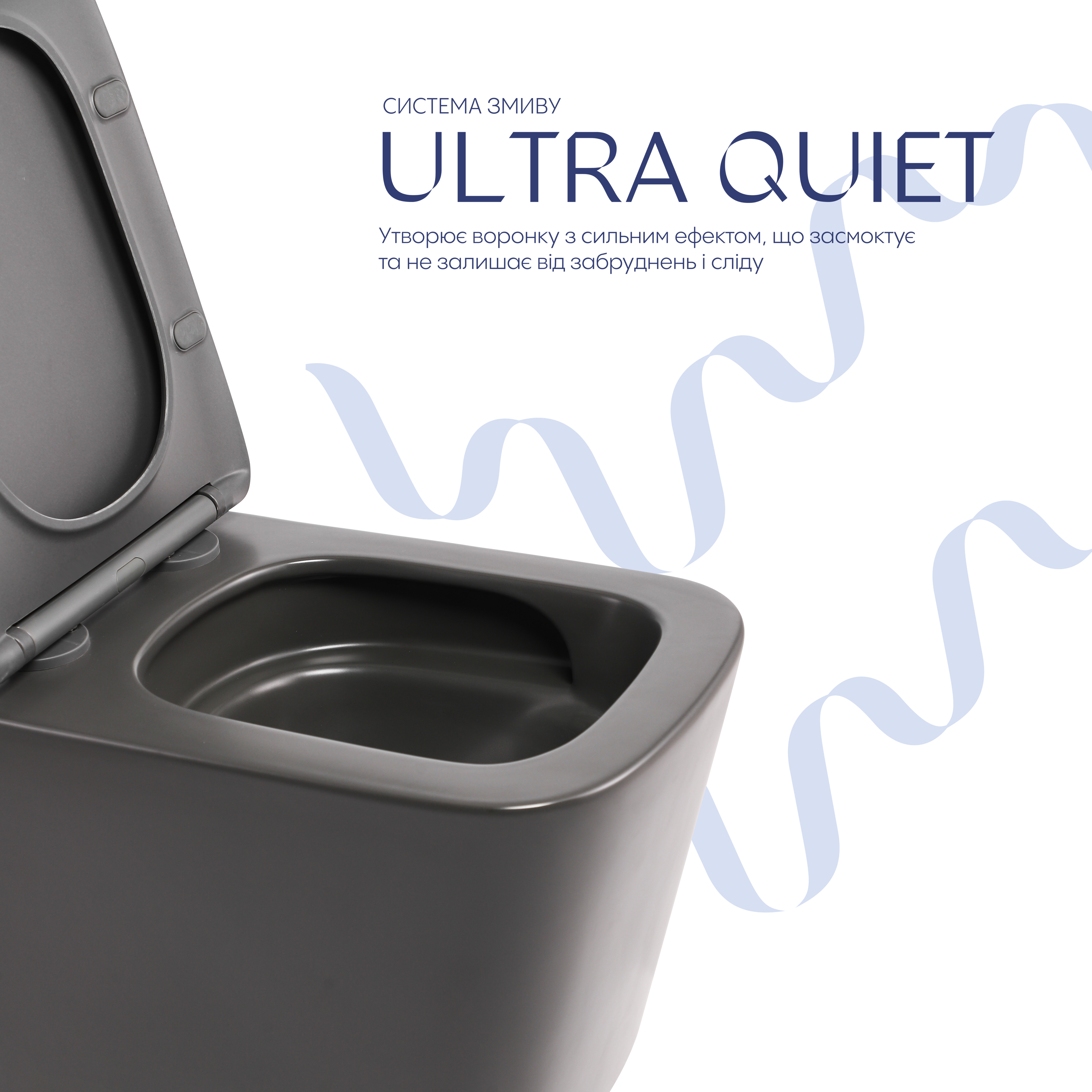 Описание Унитаз подвесной Tern Ultra Quiet 490×365×325 мм, Anthracite, с сиденьем Slim Duroplast / Soft-close / Quick Release QT17332303ASAN Qtap код товару SD00054288