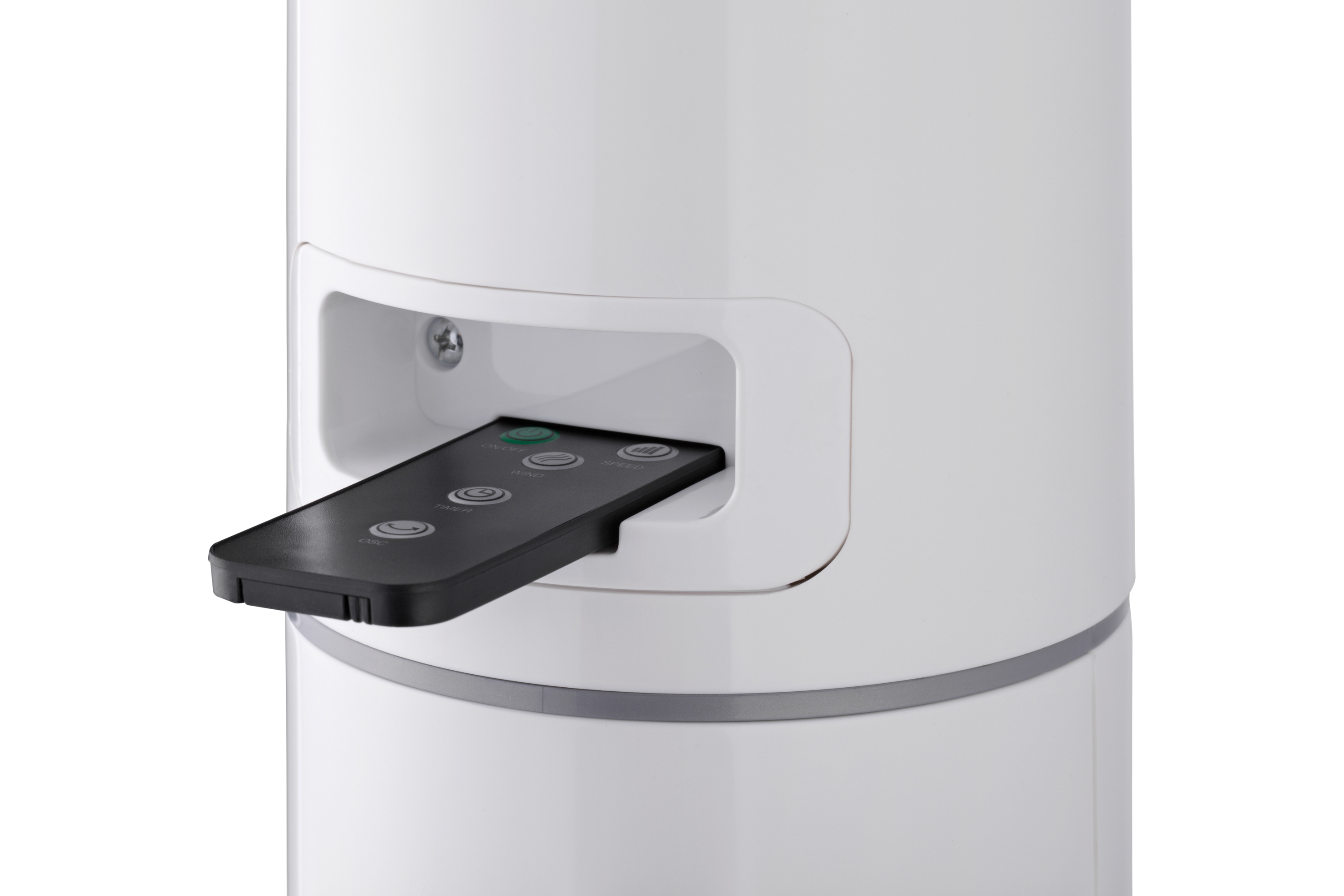 Підлоговий вентилятор колонного типу з потужністю 50 Вт, пультом дистанційного управління, таймером, датчиком температури та LED-дисплеєм. Вентилятор підтримує налаштування швидкості та обертання, а також режим морського бризу.
