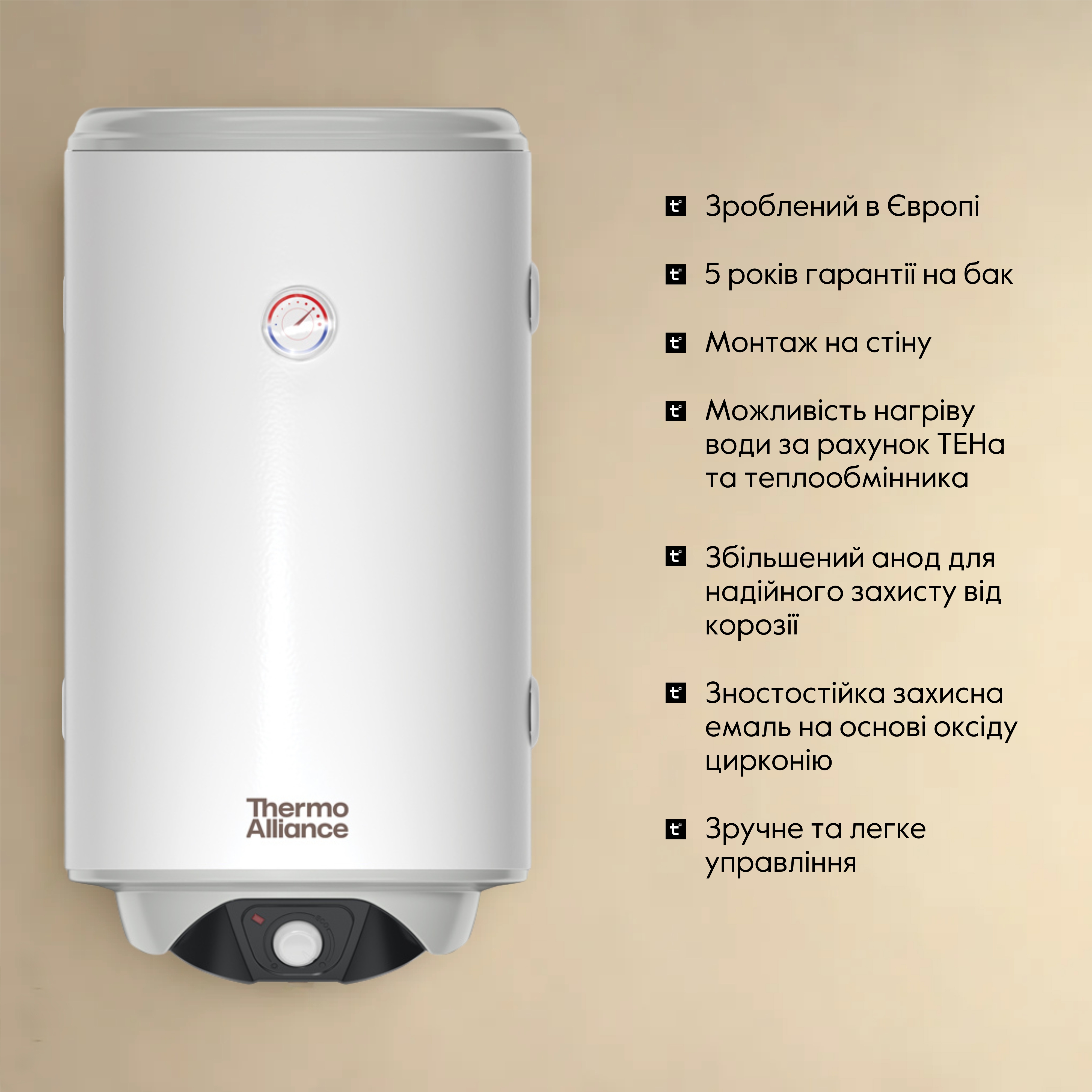 Характеристики Электрический водонагреватель Thermo Alliance 80 л, вертикальный, 2,0 кВт код товару SD00053170