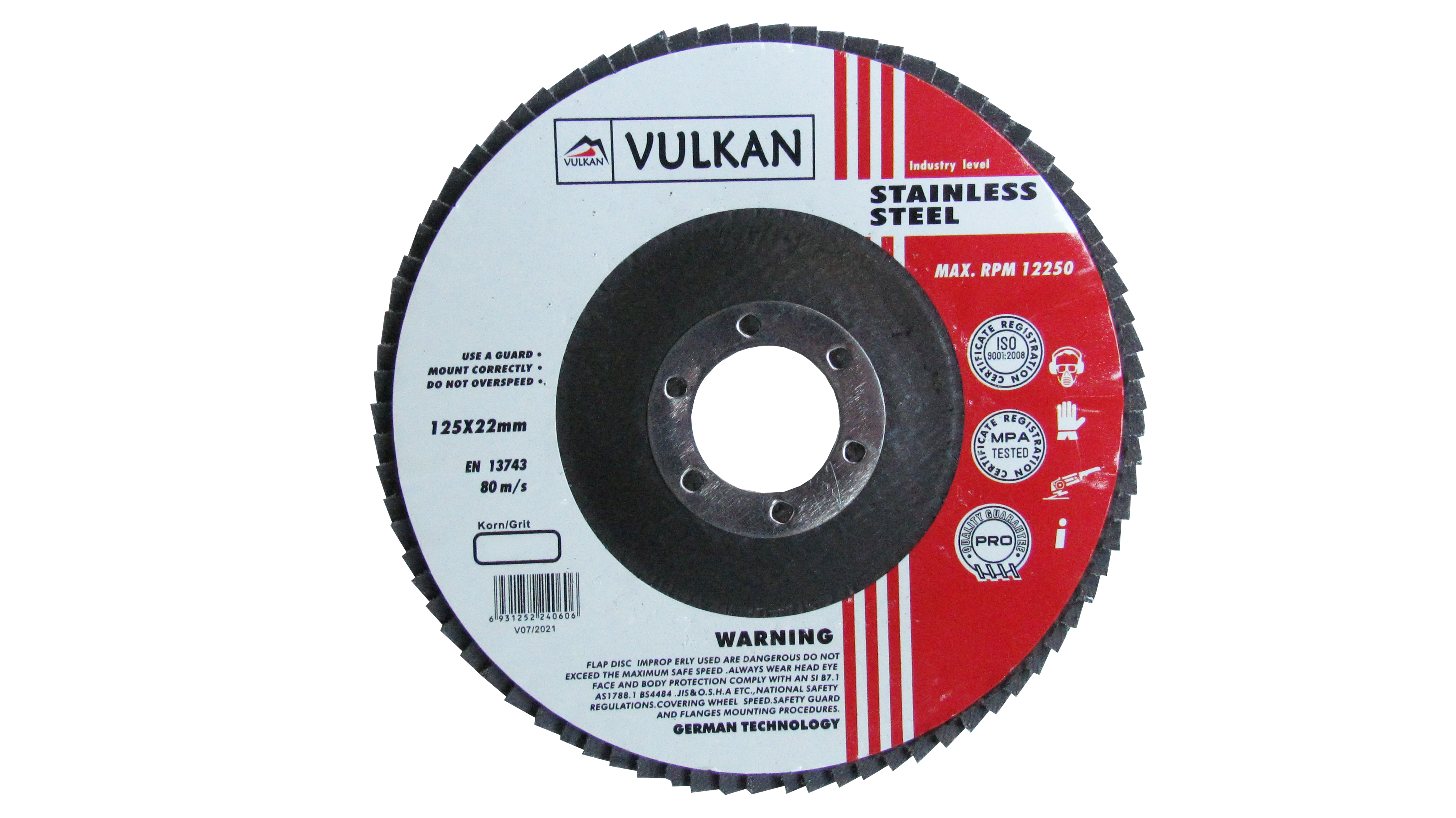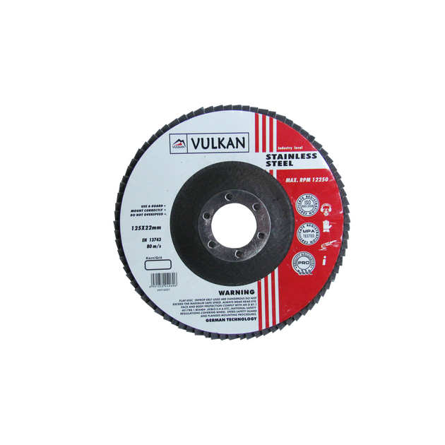 Описание VULKAN Круг пелюстковий тарілчастий 125*22 P-120 нерж. код товару SFD125ZA120