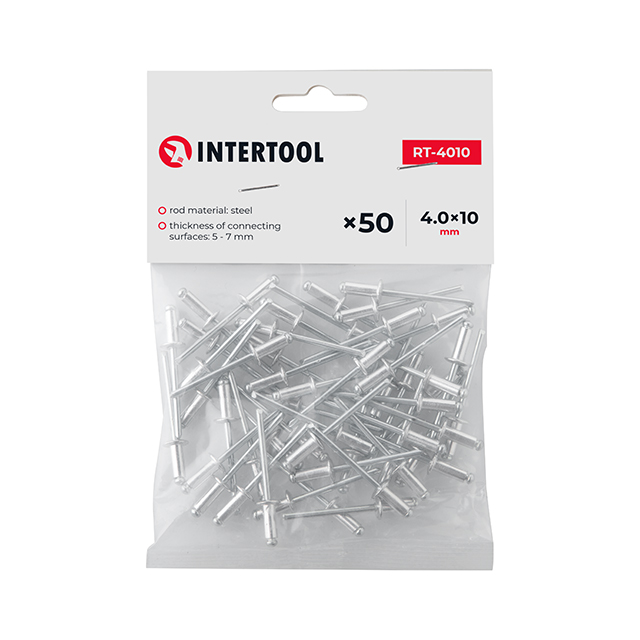 Описание Заклепка алюминиевая 4,0x10 мм, 50 шт, INTERTOOL RT-4010 код товару RT-4010