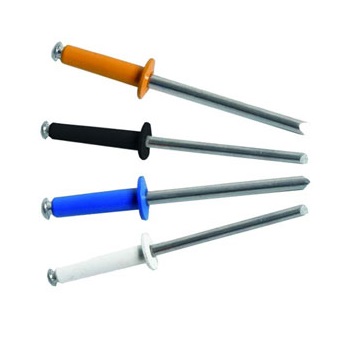 Основное применение – неразъемное соединение тонких стальных листов и прочих листовых материалов. Также она используется для монтажа фасадных пластин, гофролистов и т.п. к различным конструкциям. Заклепка состоит из алюминиевой оболочки с полукруглой шляпкой и стального стержня с утолщением на конце, обеспечивающим сплющивание оболочки. С помощью специального инструмента происходит захват стержня заклепки . Стержень при вытягивании тянет за собой тело заклепки , которое изготовлено из более мягкого металла. Тело заклепки сжимается и тянет за собой скрепляемые материалы. При монтаже заклепки необходим доступ только с одной стороны скрепляемых деталей.