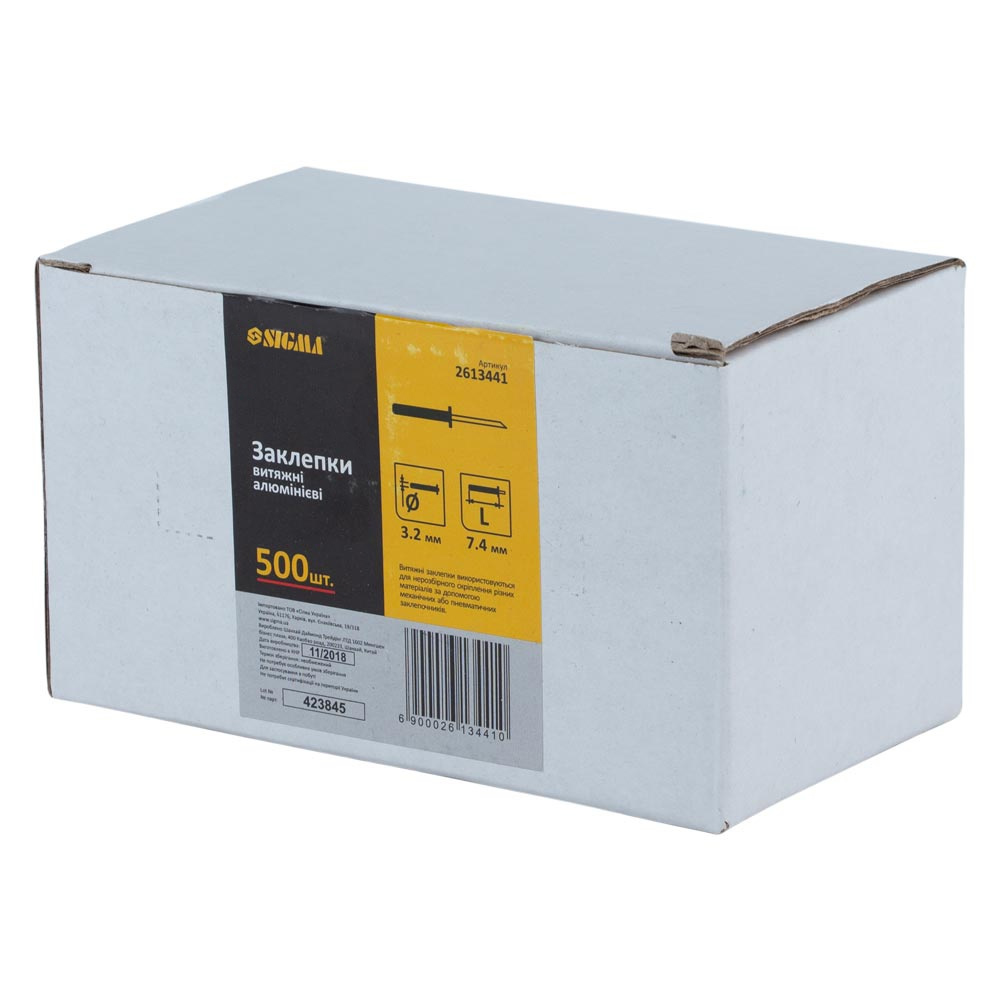 Характеристики Заклепки алюминиевые Standard 3.2×7.4мм 500шт SIGMA (2613441) код товару TR2613441