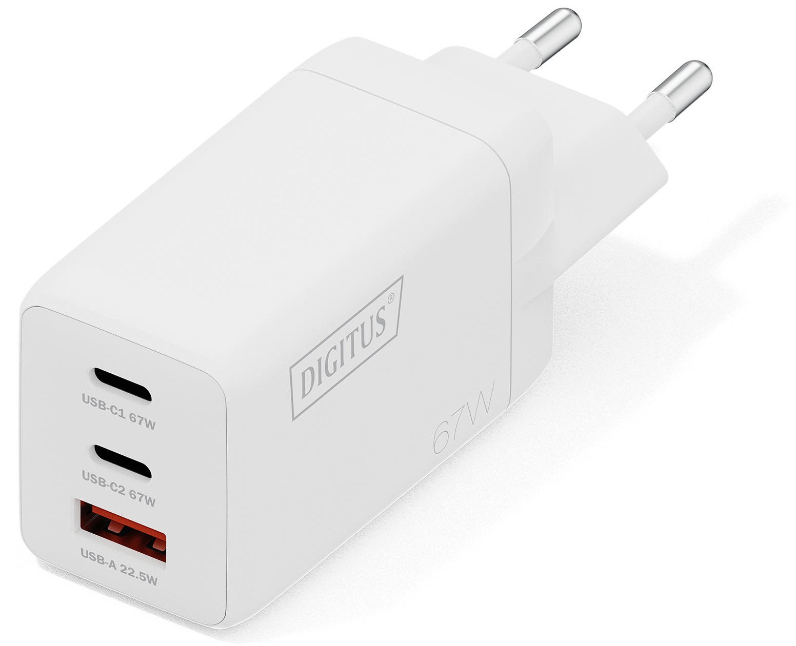 Описание Зарядний пристрій DIGITUS GaN 2хUSB-C, 1хUSB-A, 67W код товару DA-10303