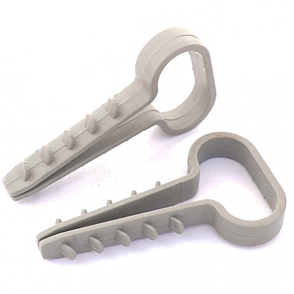 Дюбель-ялинка використовується для зручного кріплення плоского кабелю до поверхонь. У процесі монтажу, необхідно попередньо просвердлити отвір у поверхні та обхопити затискачем дюбель
