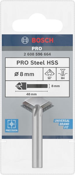 Характеристики Зенкери конічні 8 мм, M4, 48 мм, BOSCH код товару 2608596664
