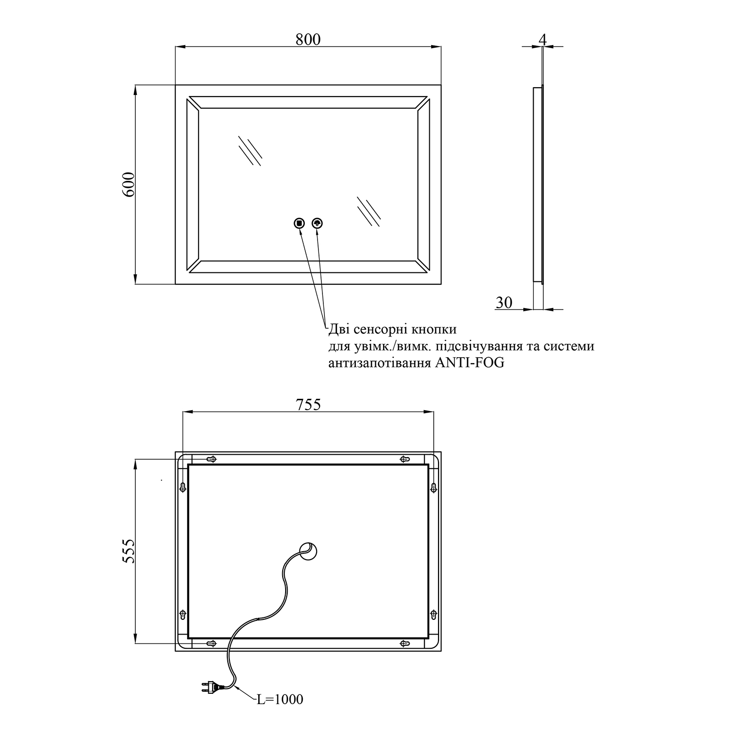 Характеристики Зеркало Kroner KRP Spiegel HR1-8060 с LED и антизапотеванием код товару CV030030