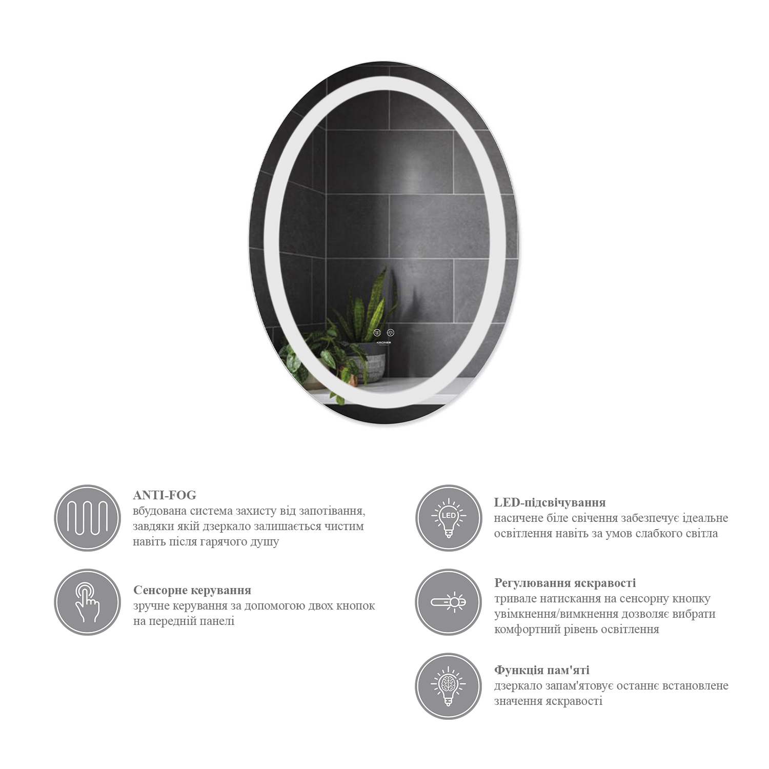 Характеристики Зеркало Kroner KRP Spiegel VO1-5070 с LED и антизапотеванием код товару CV030040