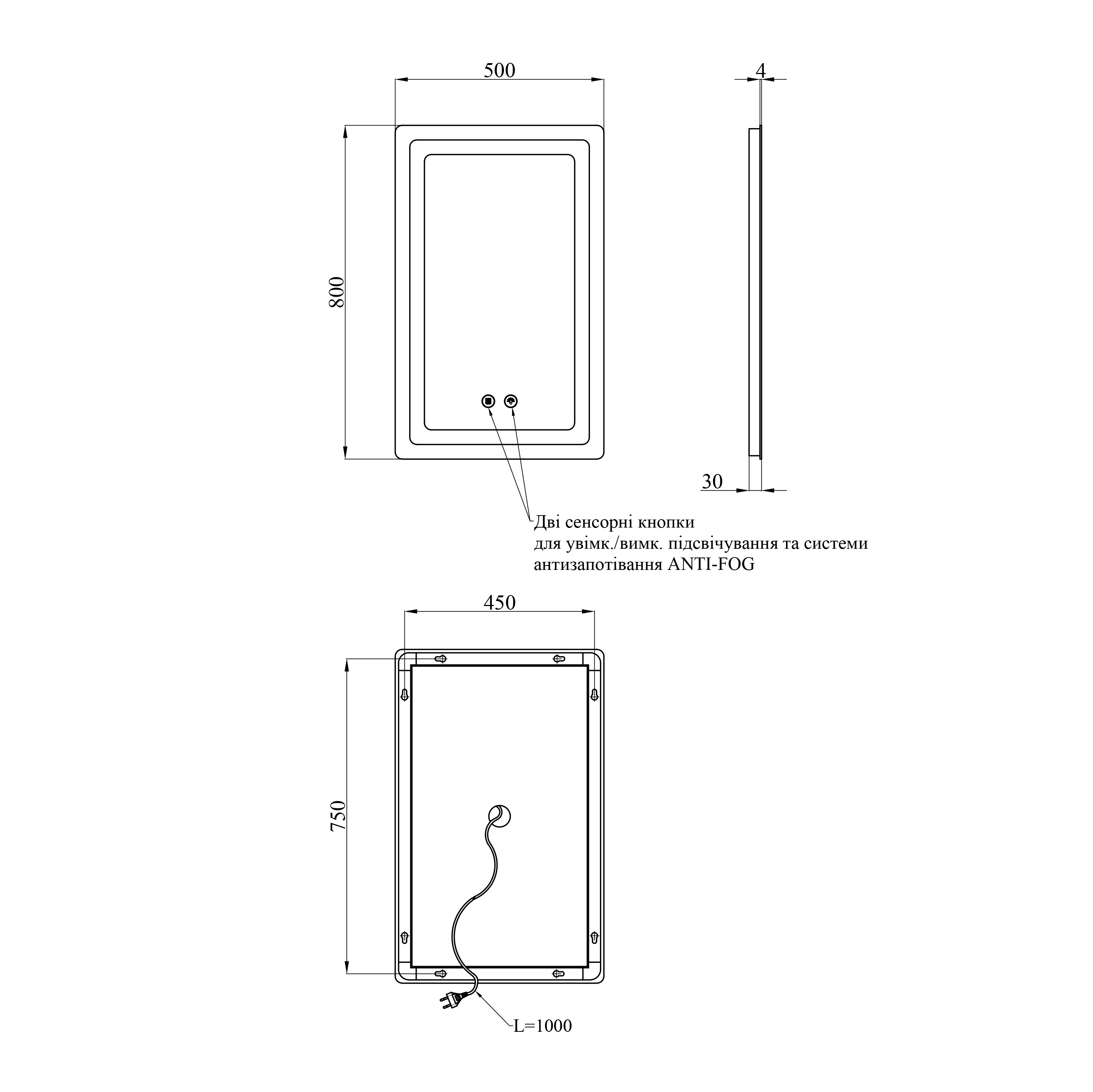 - ANTI-FOG — встроенная система защиты от запотевания, благодаря которой зеркало остается чистым даже после горячего душа.