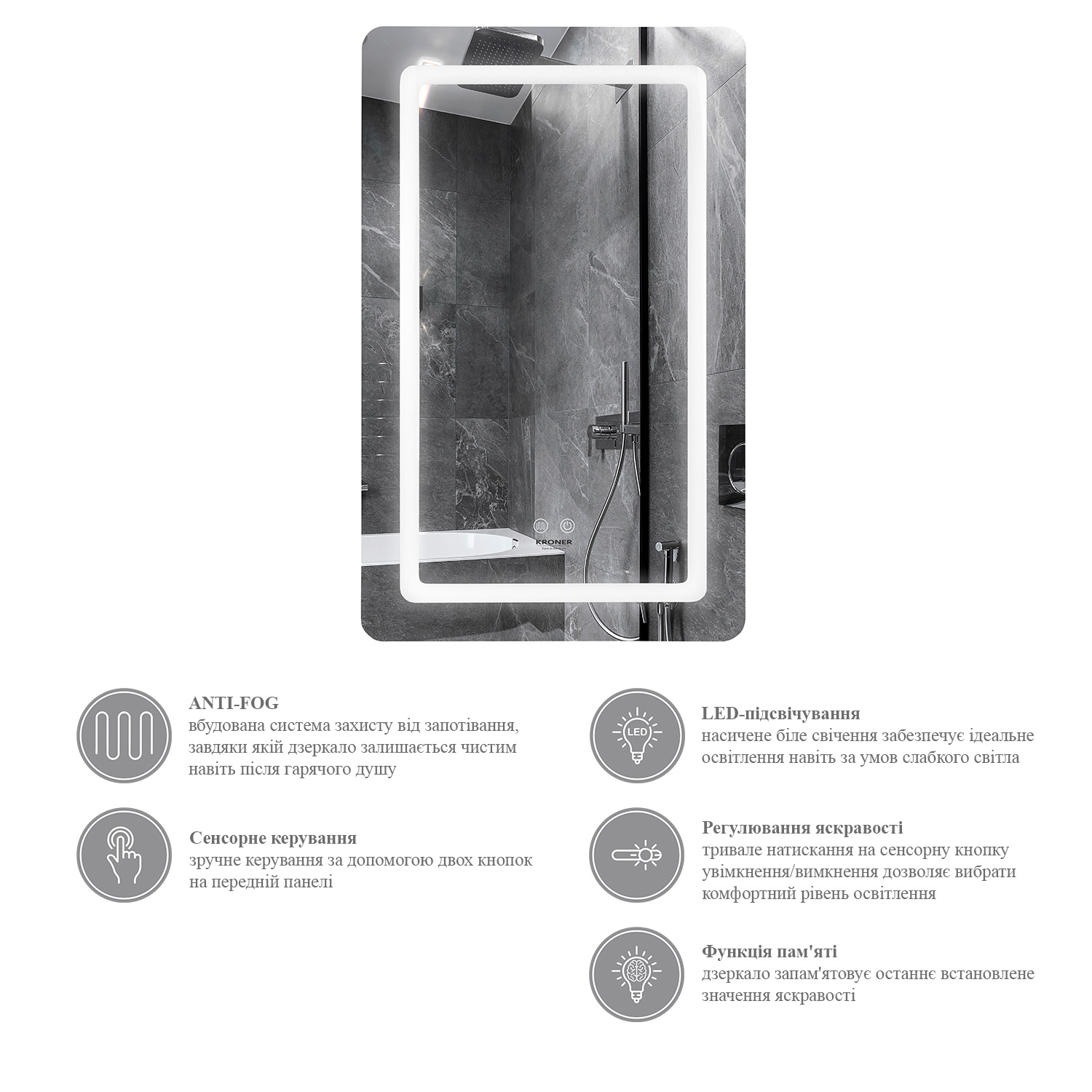 Зеркало для ванной комнаты Kroner KRP Spiegel VR6-5080 с LED-подсветкой и антизапотеванием