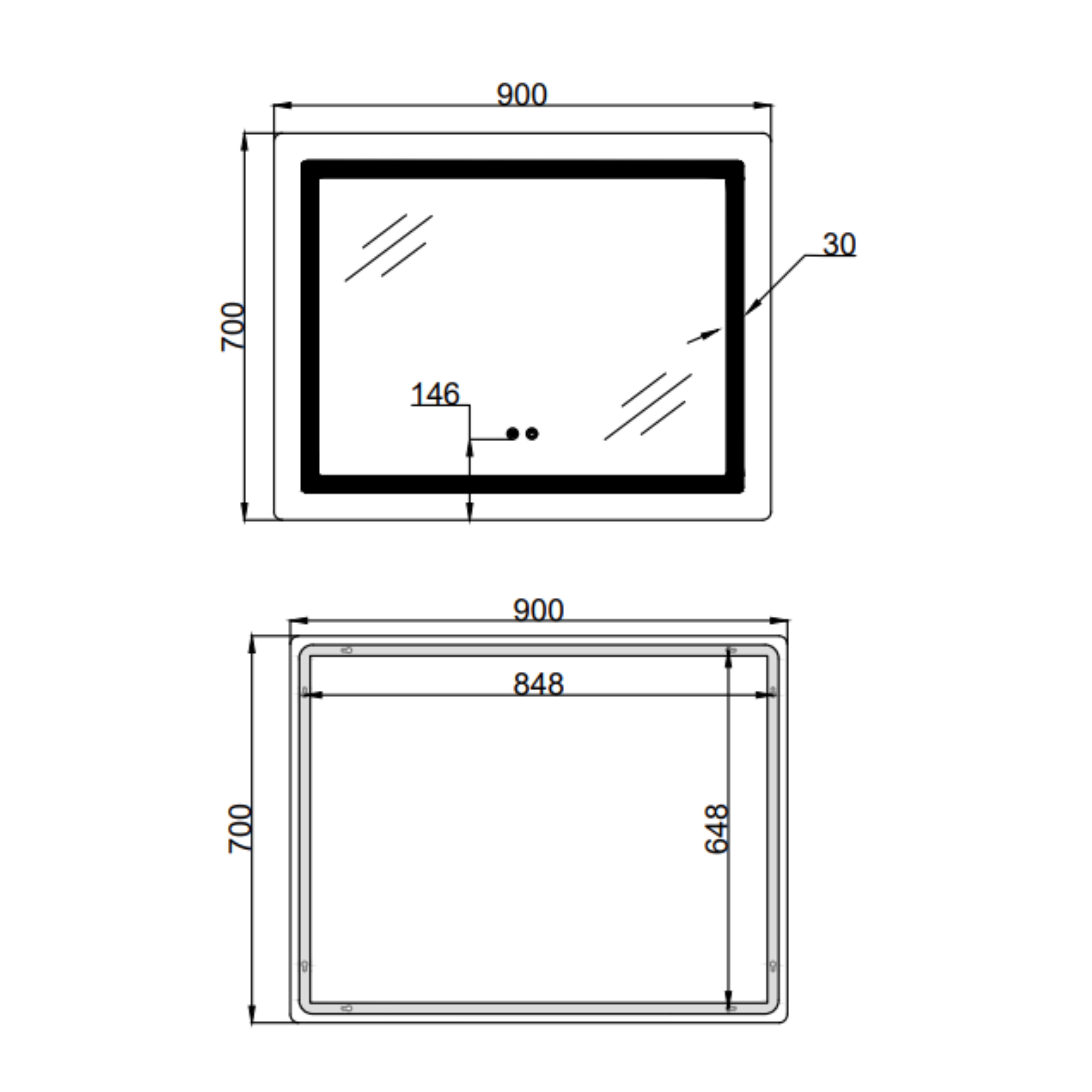 Характеристики Зеркало Lidz Kubis (KU2) 900х700 с LED-подсветкой Touch, с антизапотеванием, с диммером, рег. яркости LD78LF90448452 код товару SD00054576