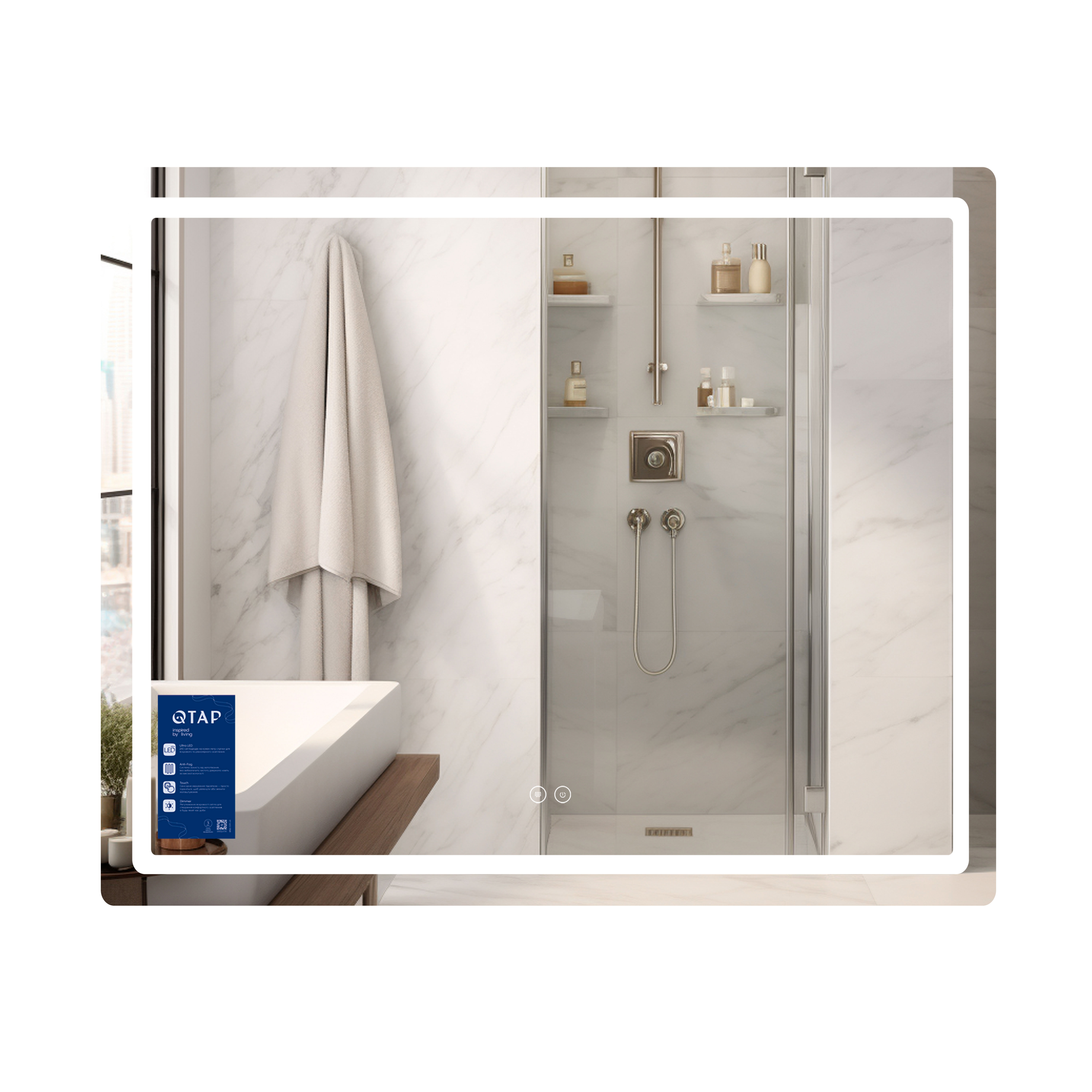 Описание Зеркало Qtap Mideya (MI2) 900х700 с LED-подсветкой Touch, с антизапотеванием, с диммером, рег. яркости QT2078NCF9070 код товару SD00054604
