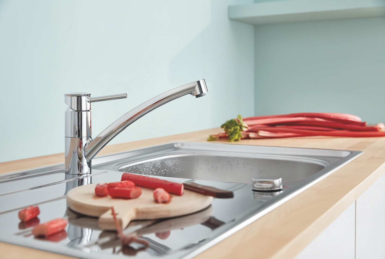 Змішувач для кухні Grohe BauClassic - стильне доповнення до будь-якої сучасної кухні. Завдяки низькому виливу розміром 231 мм і поворотній конструкції він вирізняється функціональністю та елегантністю. Одноважільне руків'я дає змогу легко регулювати температуру і витрату води.