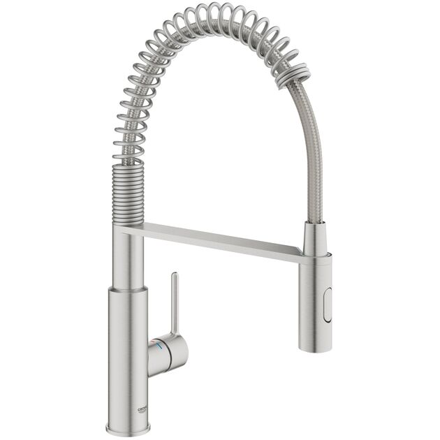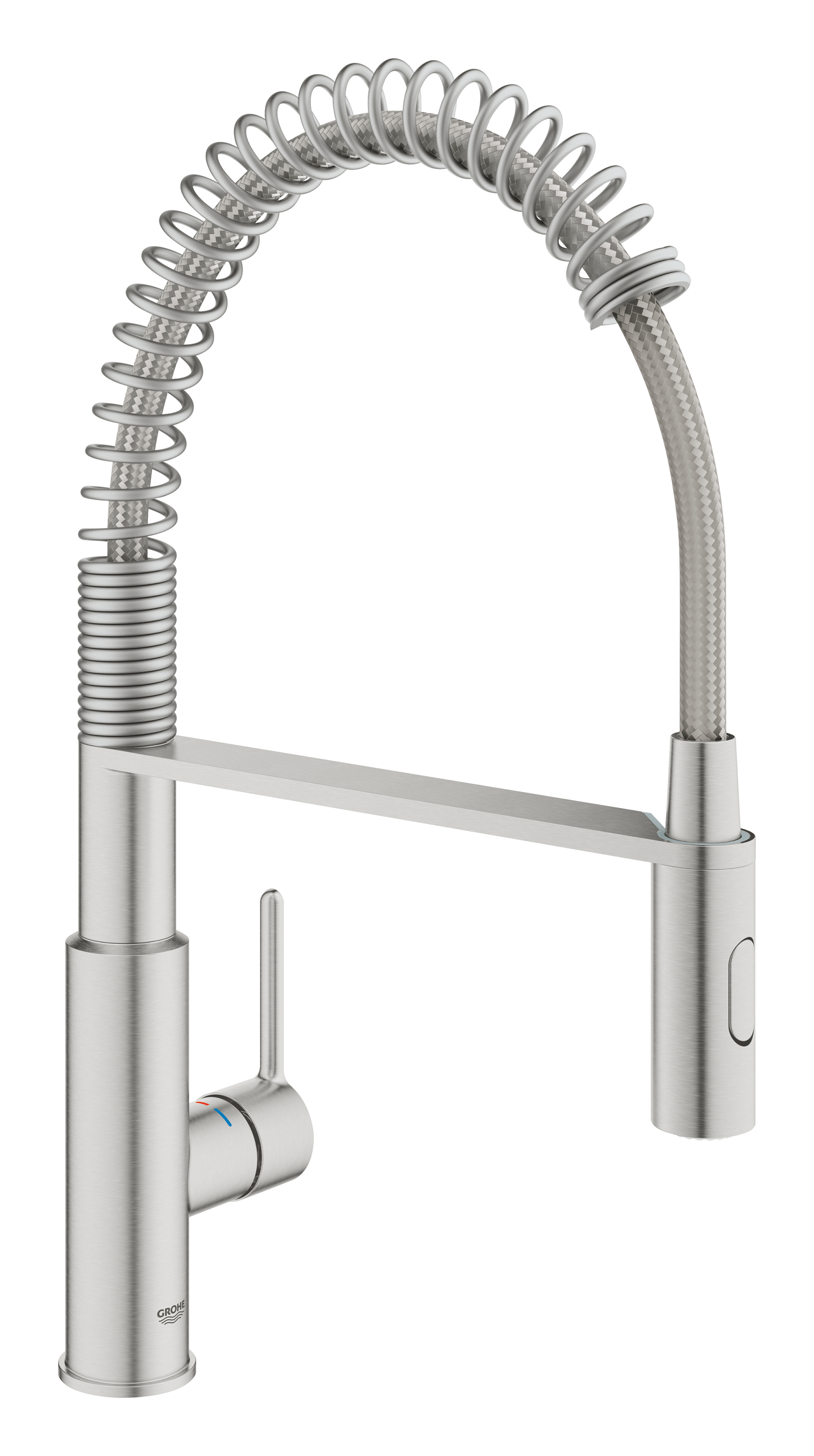 Додайте вашій кухні серйозного стилю та професійного виконання з цим кухонним змішувачем GROHE Via Cosmo. Цей яскравий змішувач для кухні має вилив, який плавно повертається на 360° для повного комфорту та зручності, а також професійний розпилювач, який встановлений на пружині для максимальної мобільності. Одним натисканням кнопки ви можете легко перемкнутися між ламінарним струменем без бризок і потужним струменем душу, тому він ідеально підходить для будь-яких завдань - від ополіскування овочів і наповнення каструль до очищення раковини.