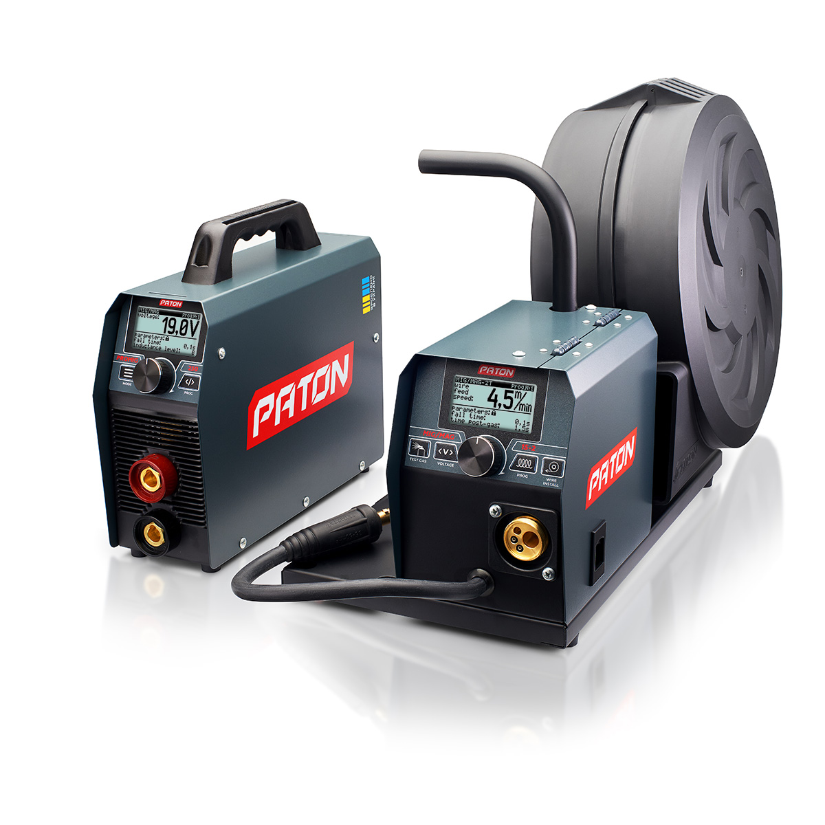 PATON ProMIG-250-15-2 обладнаний якісним металевим механізмом подачі дроту з потужним герметичним двигуном, а універсальний роз'єм KZ-2 типу "ЄВРО" дозволяє підключати зварювальні пальники від широкого ряду виробників. Потужний кронштейн під зварювальний дріт дозволяє встановлювати котушки, вагою до 15 кг. Модель ProMIG-250-15-2, в поєднанні з високою потужністю і продуктивністю, має невелику вагу і габаритні розміри. А завдяки РК-екранам апарат легко і зручно налаштувати під рішення будь-якої задачі. Апарат комплектується якісними аксесуарами від компанії ABICOR BINZEL, які дозволяють відразу почати працювати в режимах MIG/MAG та MMA.