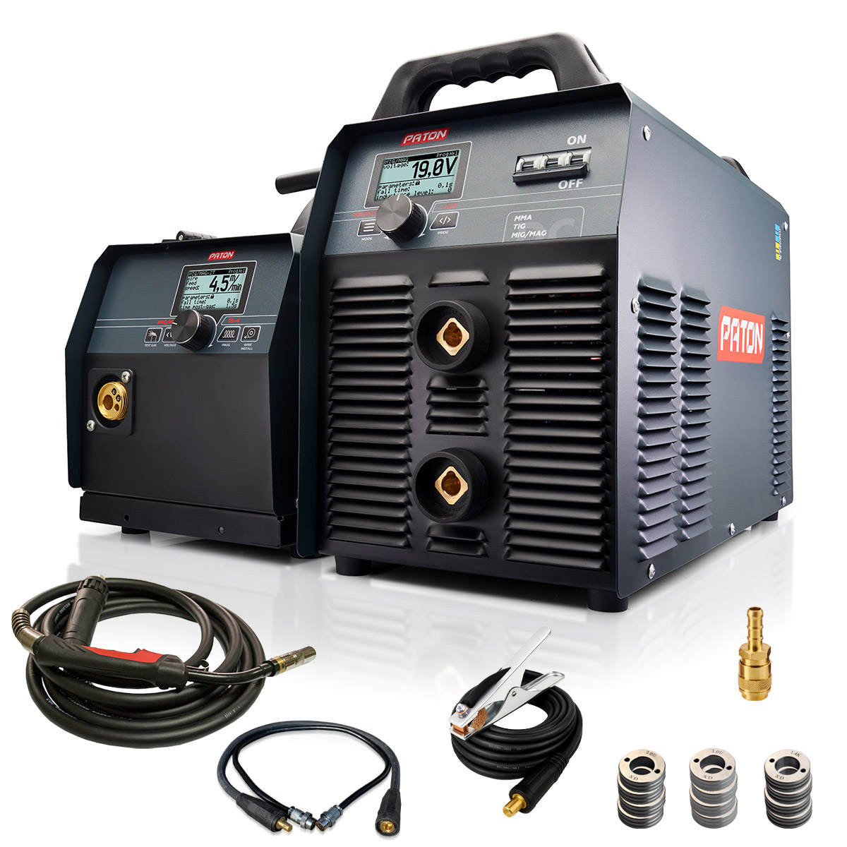 Інверторний цифровий напівавтомат PATON ProMIG-500-15-4 - це апарат для професійного використання, призначений для напівавтоматичного зварювання (НА «MIG / MAG»), ручного дугового зварювання (РДЗ «MMA»), аргонодугового зварювання (АРГ «TIG»), постійним струмом, в середовищі захисних газів і сумішей. В апараті ProMIG-500-15-4 реалізований повністю цифровий спосіб управління, за рахунок чого забезпечуються його багатофункціональність і широкі можливості в точному налаштуванні режимів зварювання.